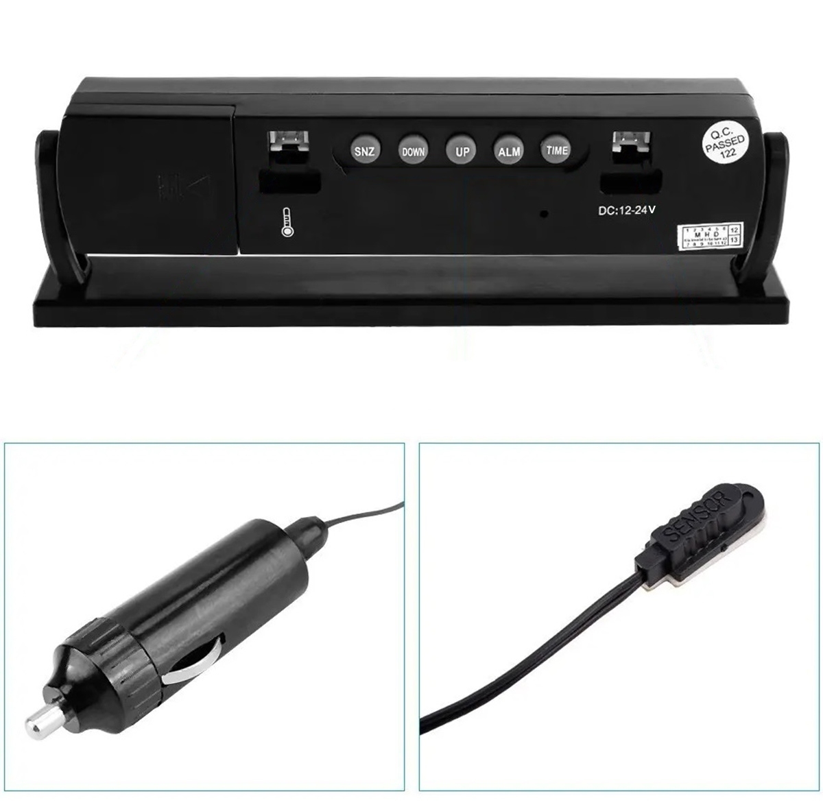 Elektroninis automobilio termometras su laikrodžiu ir akumuliatoriaus įkrovos matavimu. Termometras turi didelį, aiškų LCD ekraną su apšvietimu (maitinamas iš 12V automobilio cigarečių degiklio lizdo), kuris vienu metu rodo temperatūrą iš dviejų jutiklių, laiką ir akumuliatoriaus įtampą. Ilgas laidas su vandeniui atspariu išoriniu temperatūros jutikliu leidžia daviklį patalpinti po priekiniu buferiu, o tai garantuoja geriausią išorinės temperatūros matavimą važiuojant ir stovint. Galimybė keisti laiko rodymo formatą (12 arba 24) ir temperatūros vienetą (C / F). Komplekte yra stipri, dvipusė lipni juosta, kuri leidžia lengvai pritvirtinti termometrą prie automobilio apmušalų.
