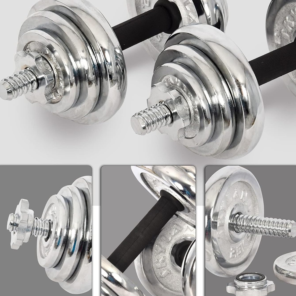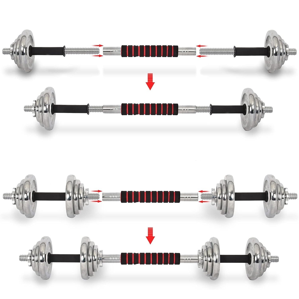 20 kg chromuotų hantelių ir štangos rinkinys 2in1 – profesionaliems ir namų sporto entuziastams