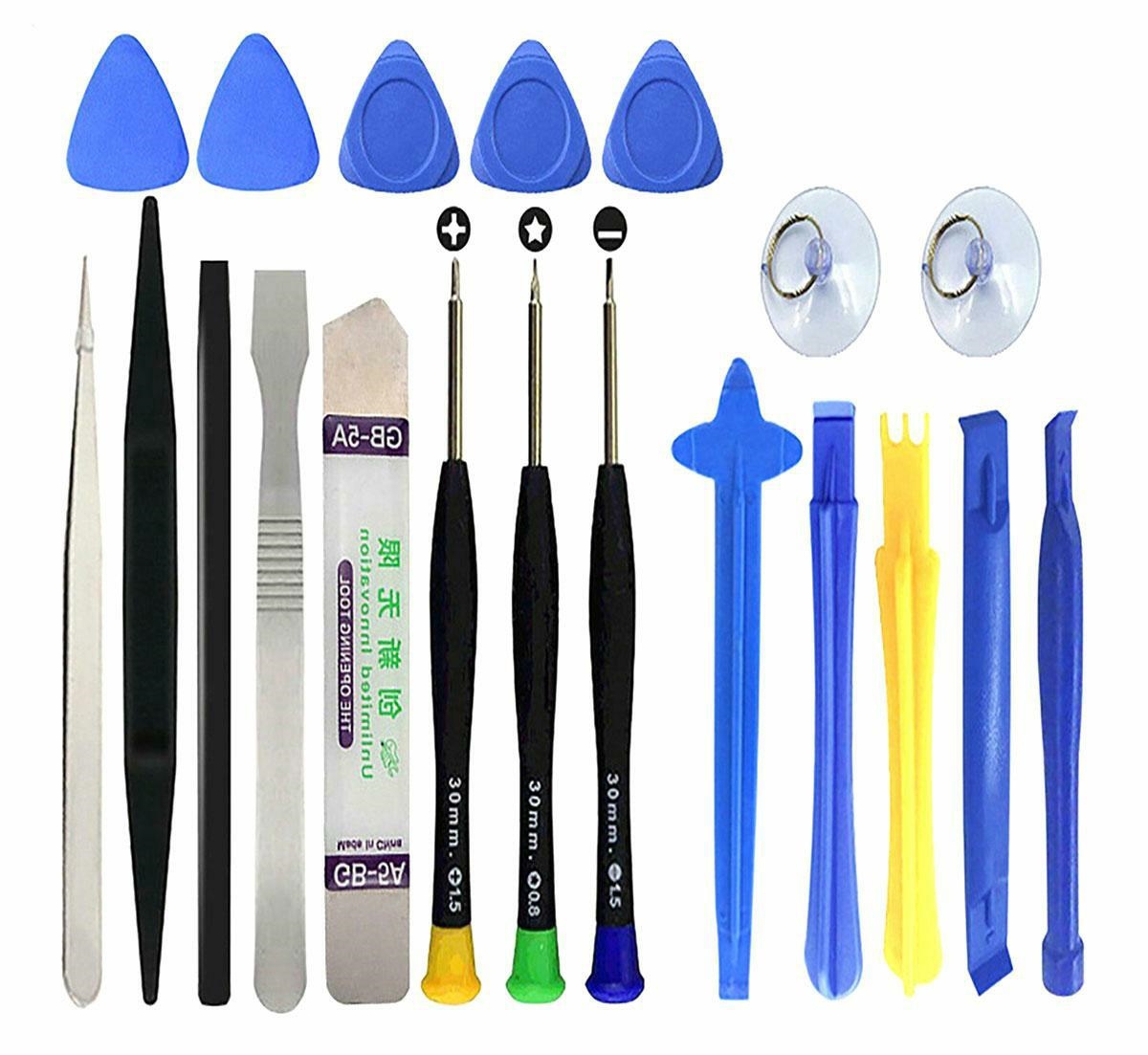 Profesionalus įrankių rinkinys telefonams ir kitiems elektroniniams prietaisams taisyti. Į komplektą įeina 20 elementų, įvairių tipų atsuktuvai, atidarytuvai, siurbtukai ir kiti reikalingi elementai kiekvienai elektronikai.