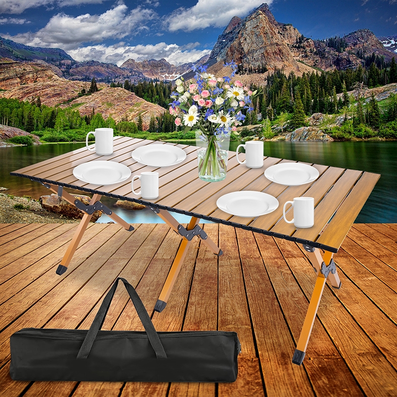 Iškylų stalas su lengvai prižiūrimu laipteliu. Surinkimas labai paprastas, tereikia išskleisti kojas ir išskleisti laiptelio viršų. Stalas pagamintas iš patvaraus milteliniu būdu dažyto plieno. Visą daiktą galima nešiotis patogiame krepšyje (pridedama).