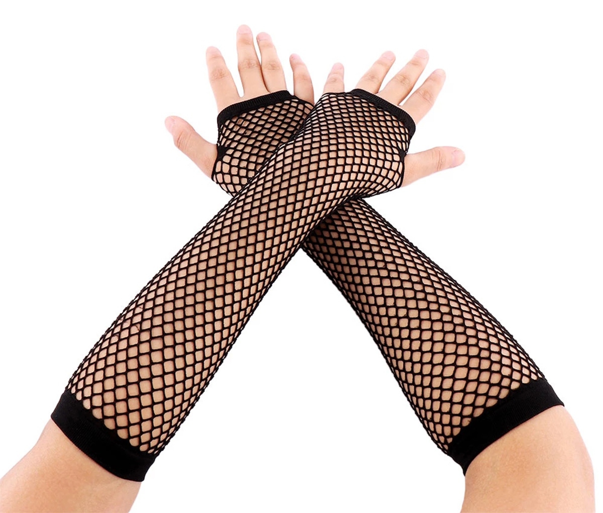 Ilgos kabareto pirštinės. Po tempimo jos pasiekia alkūnę. Pirštinės neuždengia pirštų ( baigiasi riešu).