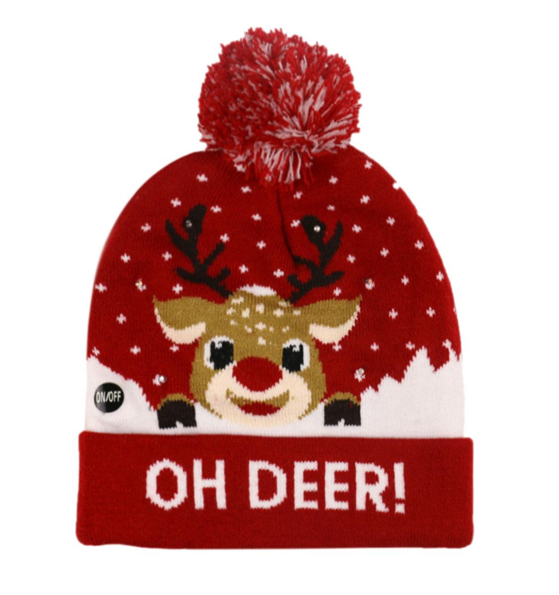 Kepurė su LED apšvietimu ir elnių motyvais. Spalvingą foninį apšvietimą galima lengvai paleisti ir išjungti specialiu mygtuku.