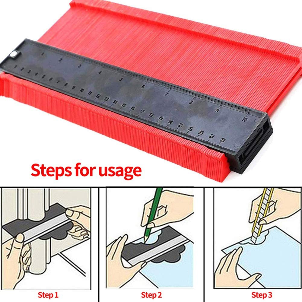 Šis kontūro matuoklis, su savo tvirtu plastikiniu dizainu, yra puikus pasirinkimas lengvam ir tiksliam kampų ir kontūrų brėžimui ant grindų dangos, kuri po to bus išpjauta.