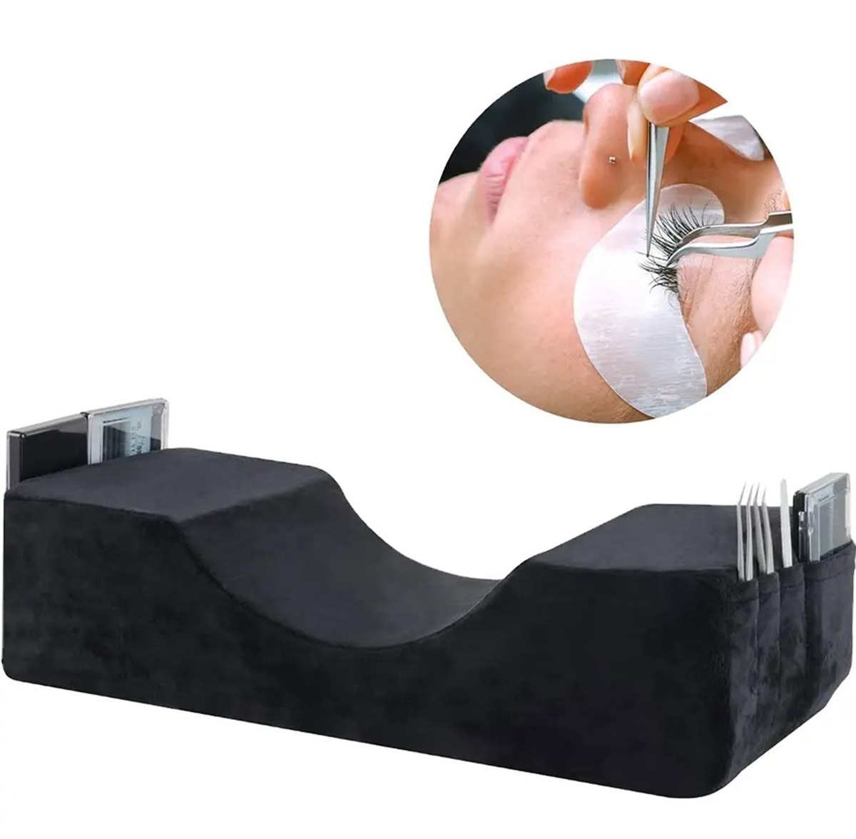 Itin praktiška kosmetinė pagalvė blakstienų priauginimui ir makiažui. Ergonomiška forma leidžia patogiai padėti galvą, o tai žymiai padidina kliento komfortą atliekant kosmetines procedūras. Papildomos angos šonuose leidžia ranka laikyti svarbiausius daiktus.