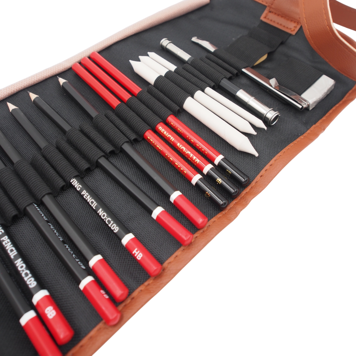 Atraskite patogų, estetišką ir profesionaliai sukomplektuotą piešimo rinkinį, skirtą tiek pradedantiesiems, tiek patyrusiems menininkams. Šis 36 dalių rinkinys su elegantišku susukamu dėklu suteikia viską, ko reikia piešimui grafitu, eskizavimui, šešėliavimui ir detalių išryškinimui. Kokybiškai pagaminti pieštukai ir aksesuarai leidžia kurti įvairaus stiliaus darbus – nuo švelnių perėjimų iki ryškių kontūrų.