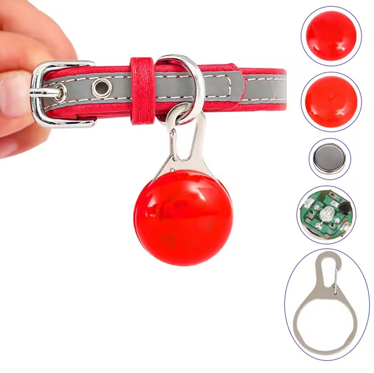 LED pakabukas ant šuns antkaklio. Puikiai tinka kaip gyvūnų ieškiklis, padidinantis jų saugumą. Efektyviai pagerina jūsų augintinio matomumą sutemus. Du apšvietimo režimai – nepertraukiamas ir pulsuojantis. Lempa maitinama dviem keičiamomis CR2016 baterijomis.