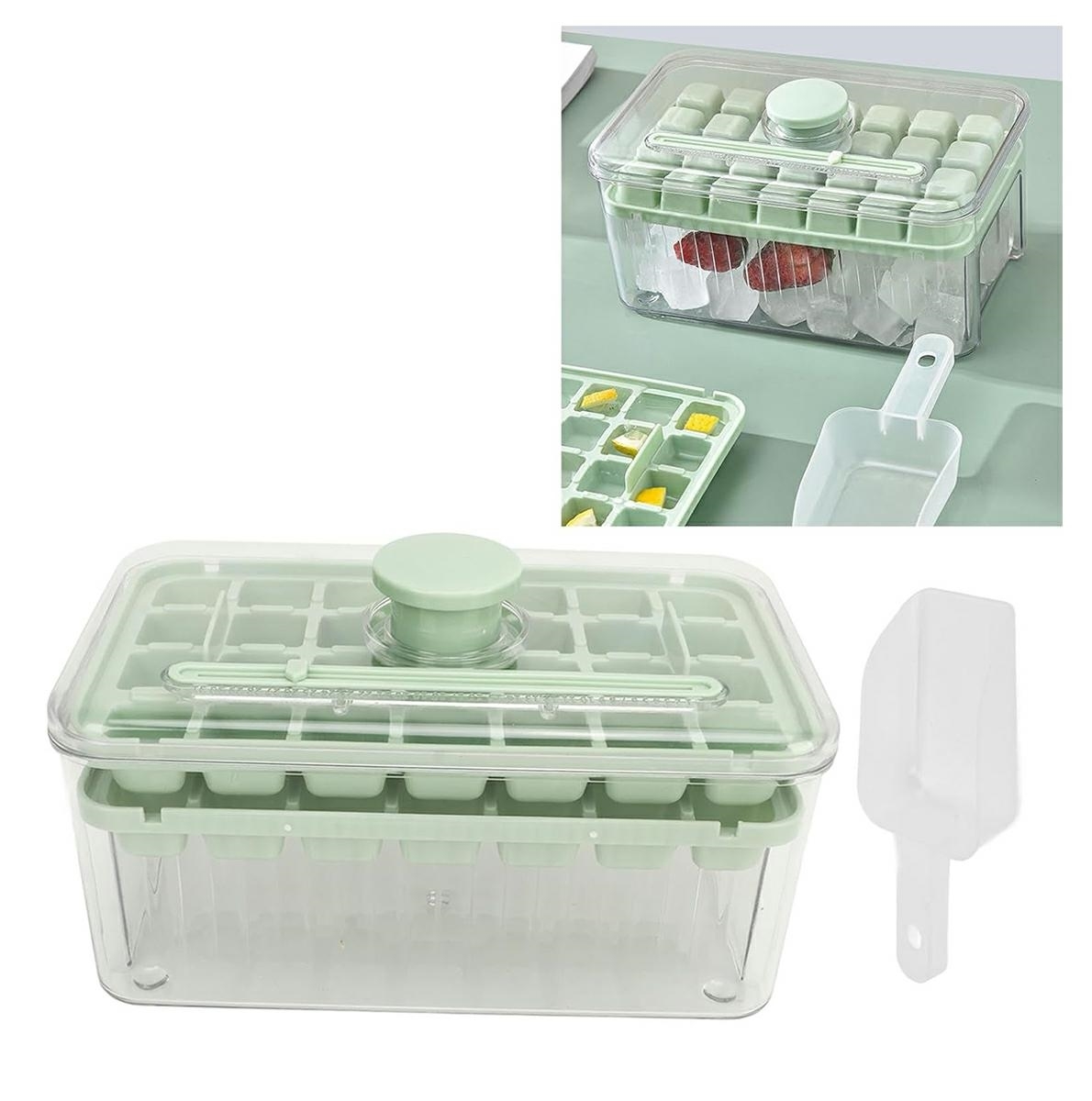 Didelis ledo kubelių indas su 2 formelėmis (56 kubeliai) ir samteliu – žalias