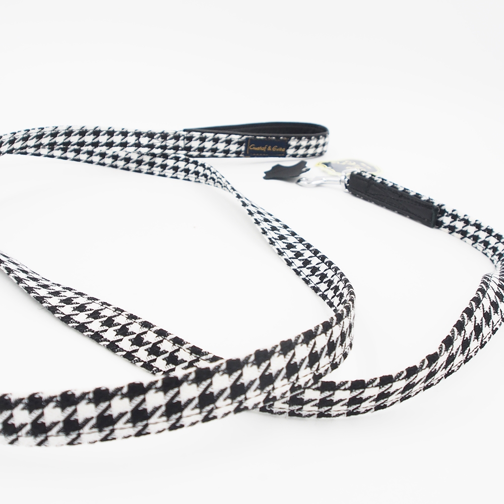 Suteikite pasivaikščiojimams su augintiniu stiliaus ir komforto su šiuo išskirtiniu Gustaf & Evita pavadėliu! 150 cm ilgio aksesuaras yra pagamintas iš tvirto audinio su klasikinio „houndstooth” (žąsies pėdelės) raštu bei papildytas natūralios odos detalėmis, užtikrinančiomis ilgaamžiškumą bei prabangų pojūtį.