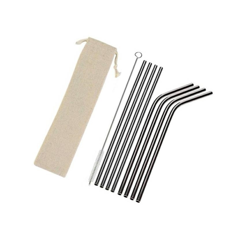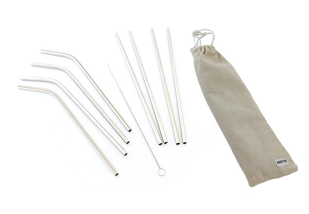 Elegantiškų, daugkartinio naudojimo šiaudelių rinkinys. Pagaminti iš nerūdijančio plieno. Naujas, ekologiškas sprendimas, priešingas klasikiniams šiaudeliams, pagamintiems iš plastiko!