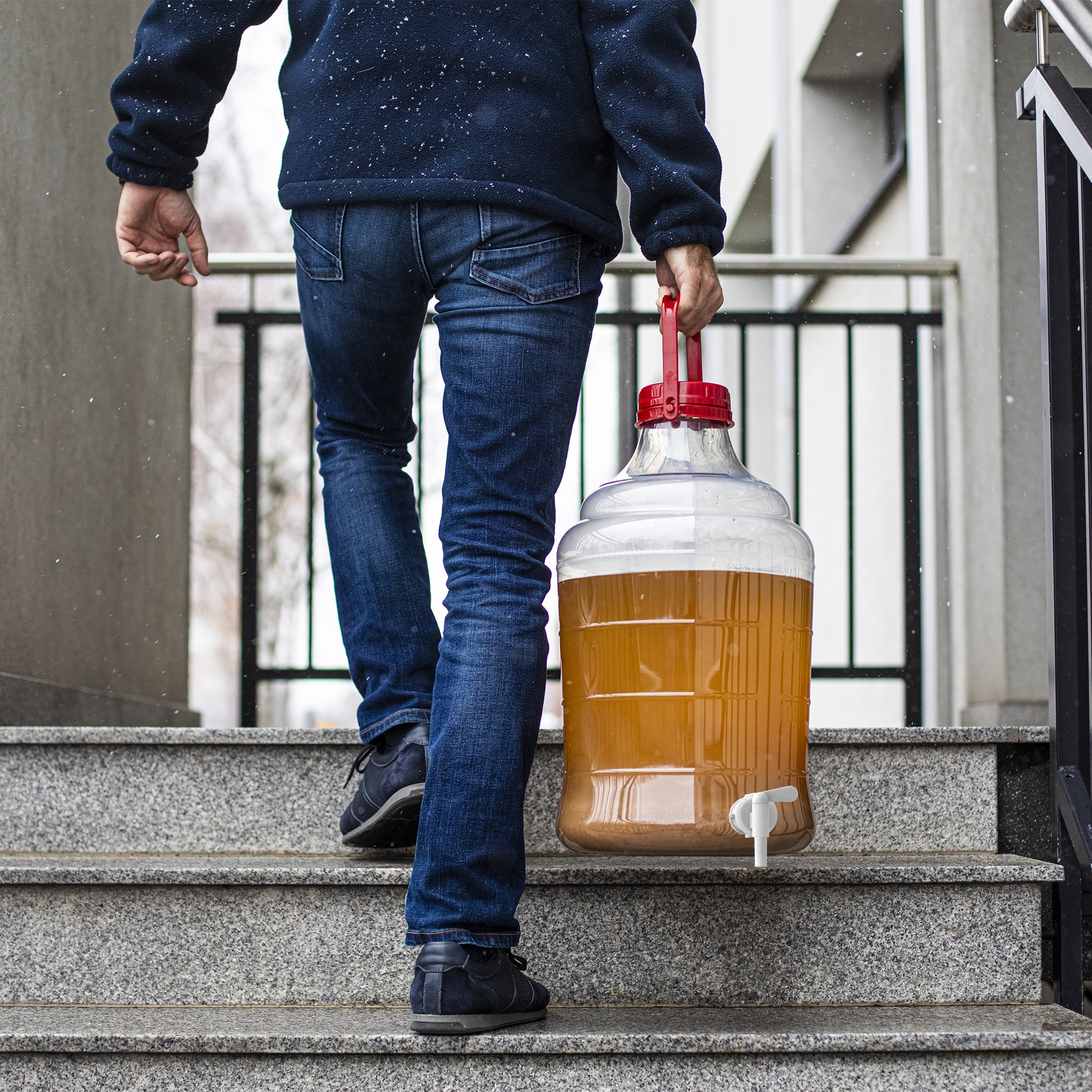Tvirtas ir saugus – PET demijonas nesulūžta, kaip stiklinis, ir yra pagamintas iš alkoholio saugių medžiagų.