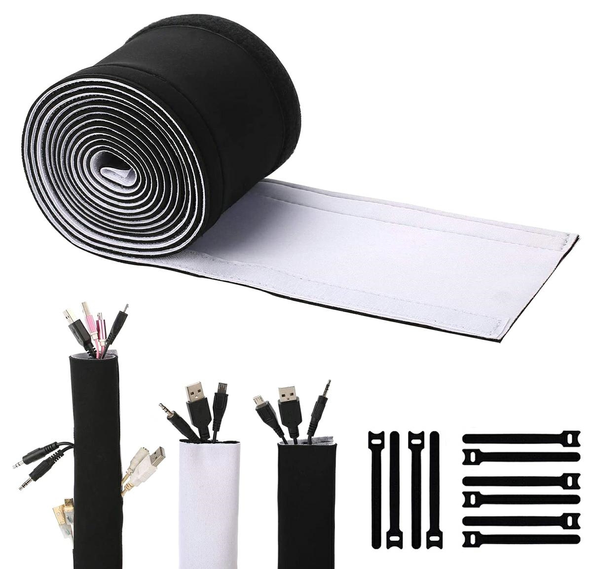Suvyniotas, neopreno kabelių tvarkytuvas, kurio ilgis iki 3 metrų. Įrengtas tvirtas Velcro užsegimas, kuris efektyviai apsaugo elektros laidus užlenkus dangtelį. Puikiai tinka RTV spintelėms ir biuro įrangai, laidų ritiniams tvarkyti. Tvirta medžiaga yra atspari pažeidimams ir tuo pačiu leidžia išpjauti skylutes bet kurioje vietoje.