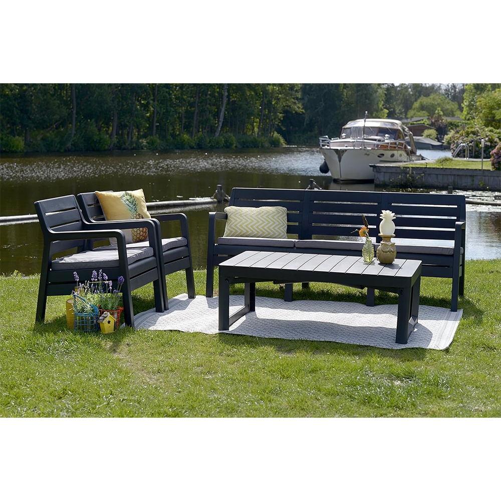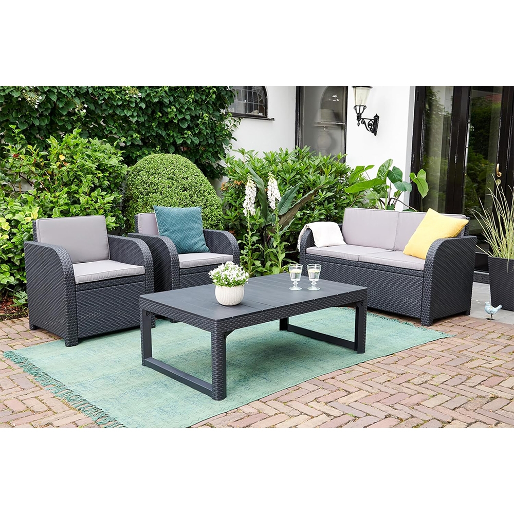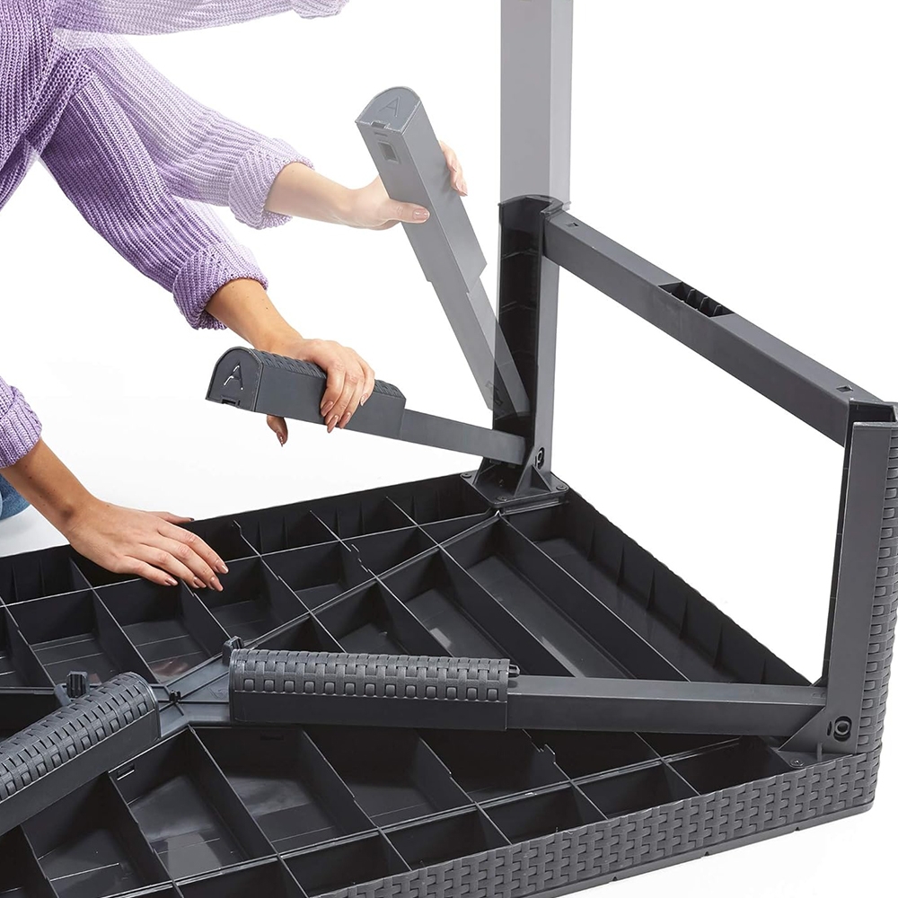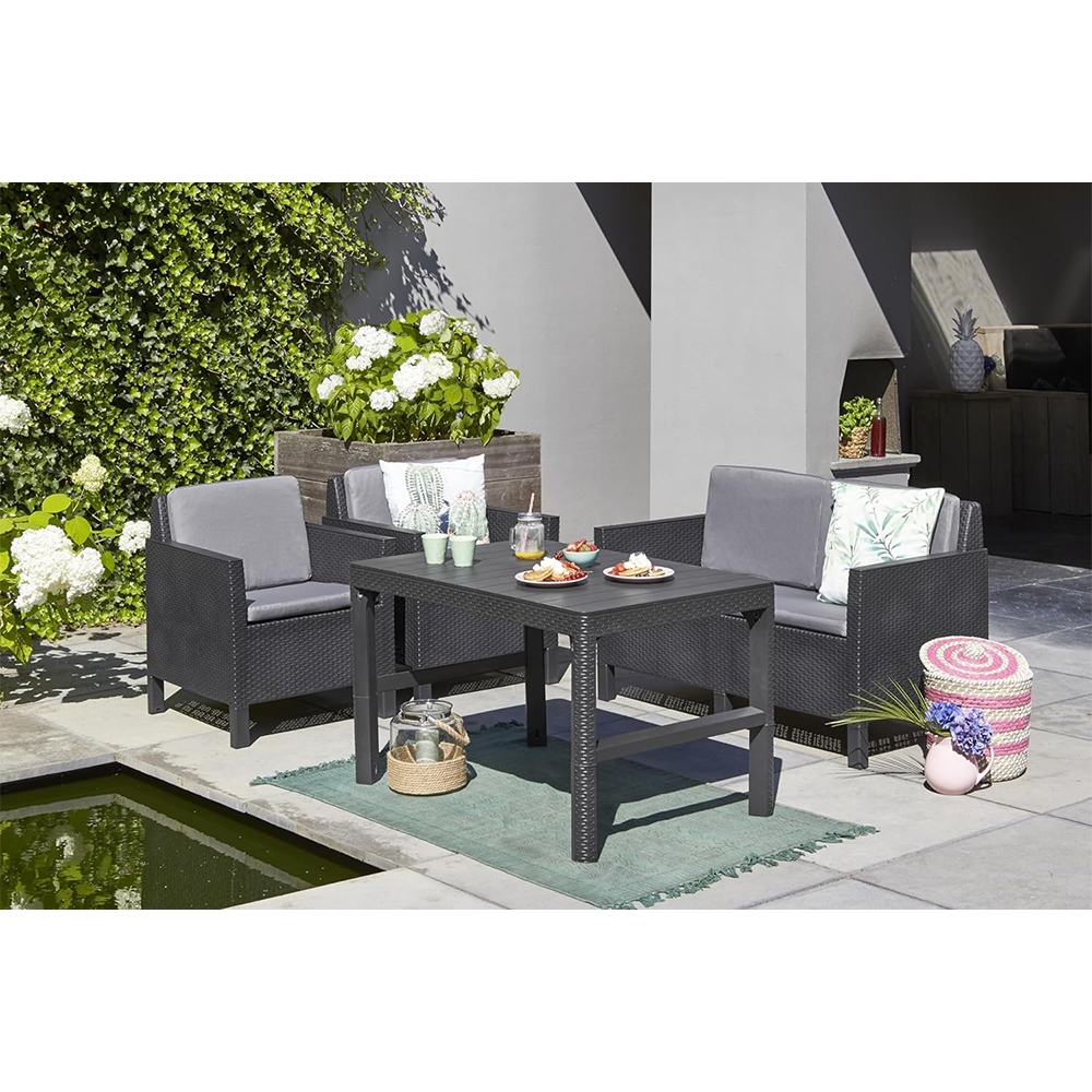 Staliukas pasižymi paprastu, bet stilingu dizainu ir yra pagamintas iš įvairioms oro sąlygoms atsparios bei priežiūros nereikalaujančios medžiagos su modernia plokščia pinta tekstūra bei pasižymi Rezolith stalviršio elegantiška dirbtinės medienos išvaizda. Jums daugiau niekada nereikės jaudintis dėl šių priežiūros nereikalaujančių medžiagų spalvos blukimo, rūdijimo, puvimo ar lupimosi, todėl staliukas puikiai tiks naudoti lauke. Jis yra pristatomas su dvejomis kojelių poromis, todėl jį galėsite naudoti kaip 40cm kavos staliuką arba kaip 66cm valgomojo stalą.