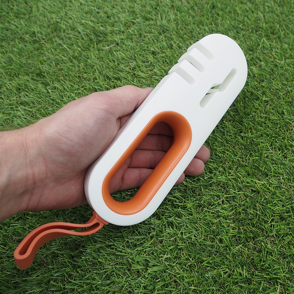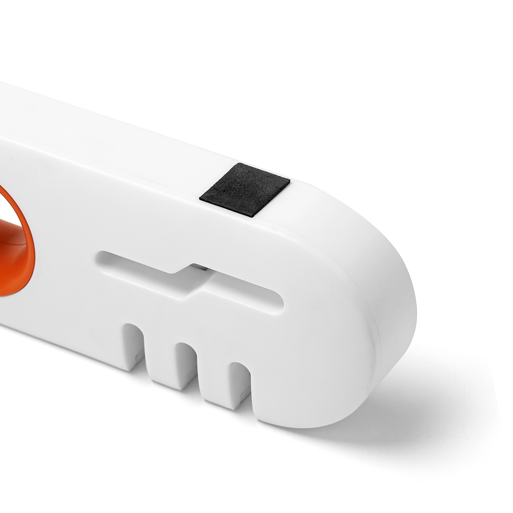 - Patogi, ergonomiška rankena, kurią galima laikyti galandant.