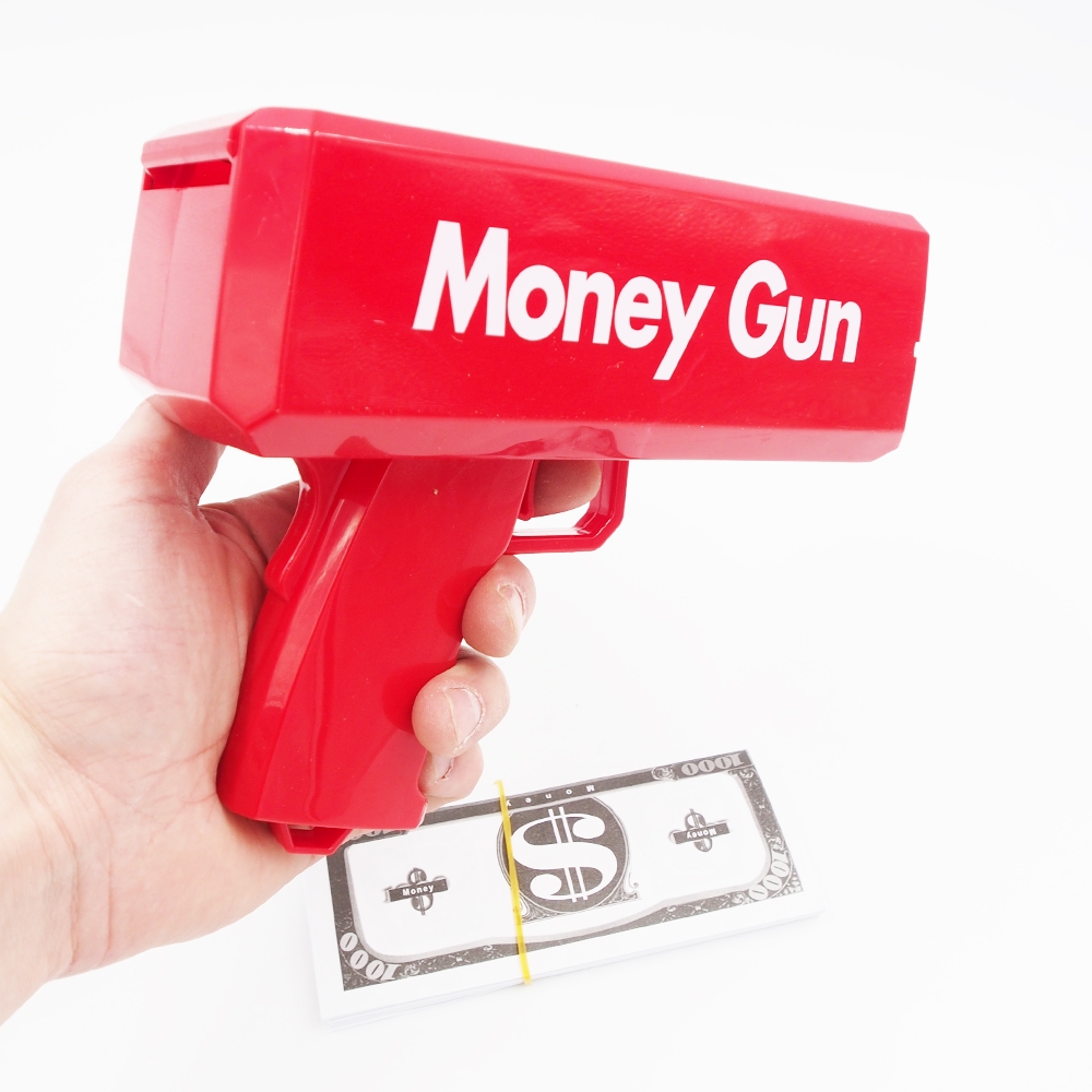 Pinigų šautuvas, šaudantis banknotus! Ryški dovana, tinkanti absoliučiai bet kokio amžiaus. Šautuvas purškia banknotus į orą, sukurdamas pinigų lietaus efektą. Money Gun skirtas ryškiems vakarėliams, naktiniams klubams, taip pat vestuvėms, fotosesijoms ir kitiems smagiems renginiams. Tiesiog įdėkite pinigus į specialų ginklo skyrių, nuspauskite gaiduką ir drąsiai gaudykite ore sklandančias kupiūras!