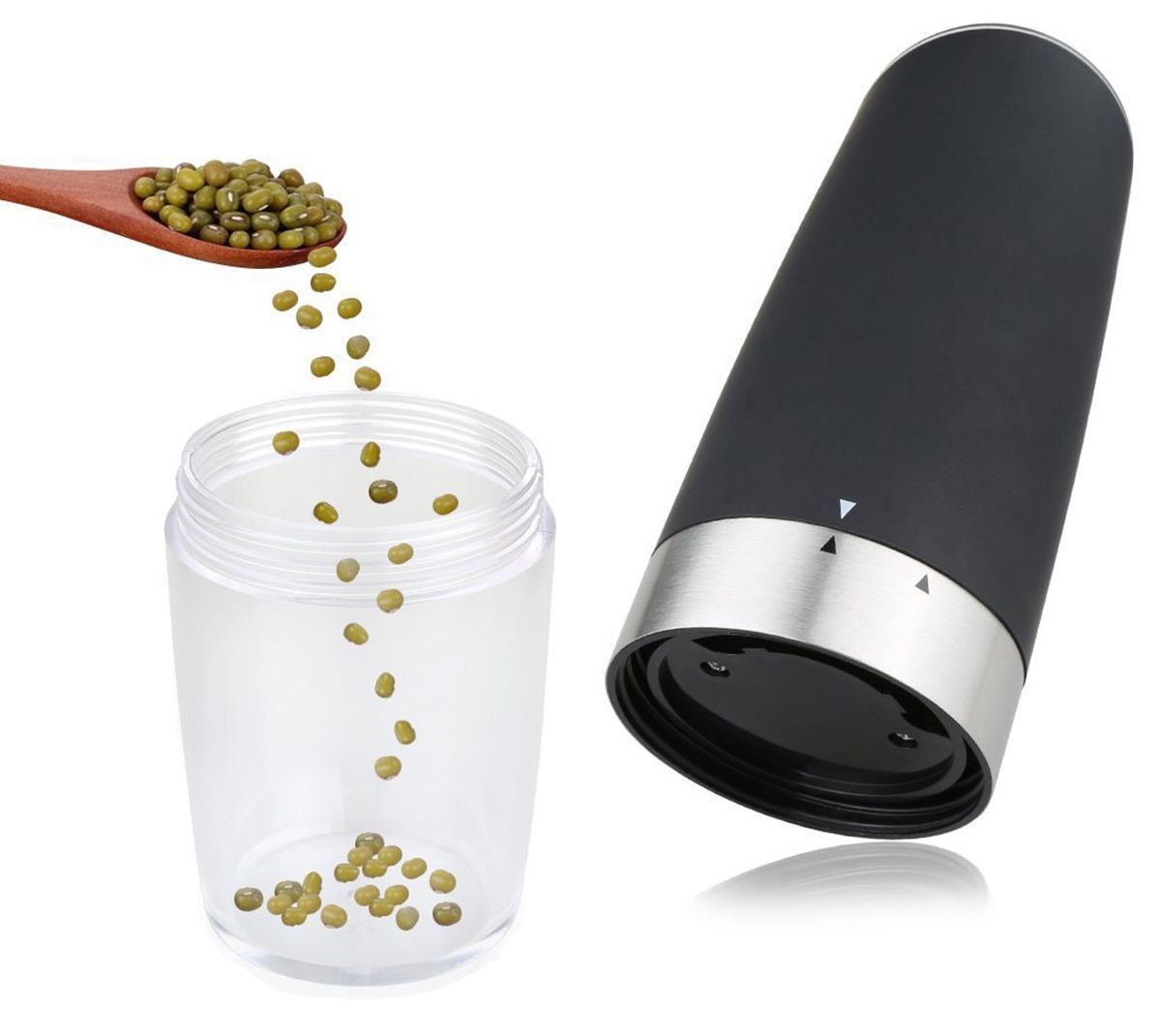 Gravitacinis elektrinis pipirų ir druskos malūnėlis. Itin patogus prietaisas, kuris žaibiškai sutraiško prieskonius. Užtenka prietaisą pasukti 180 laipsnių kampu, kad įjungtumėte malūnėlį – tai rodo estetiškas LED apšvietimas. Produktas turi permatomą indelį, kuris leidžia lengviau patikrinti, kiek jame liko prieskonių. Įrenginys maitinamas 6 AAA 1,5 V baterijomis.