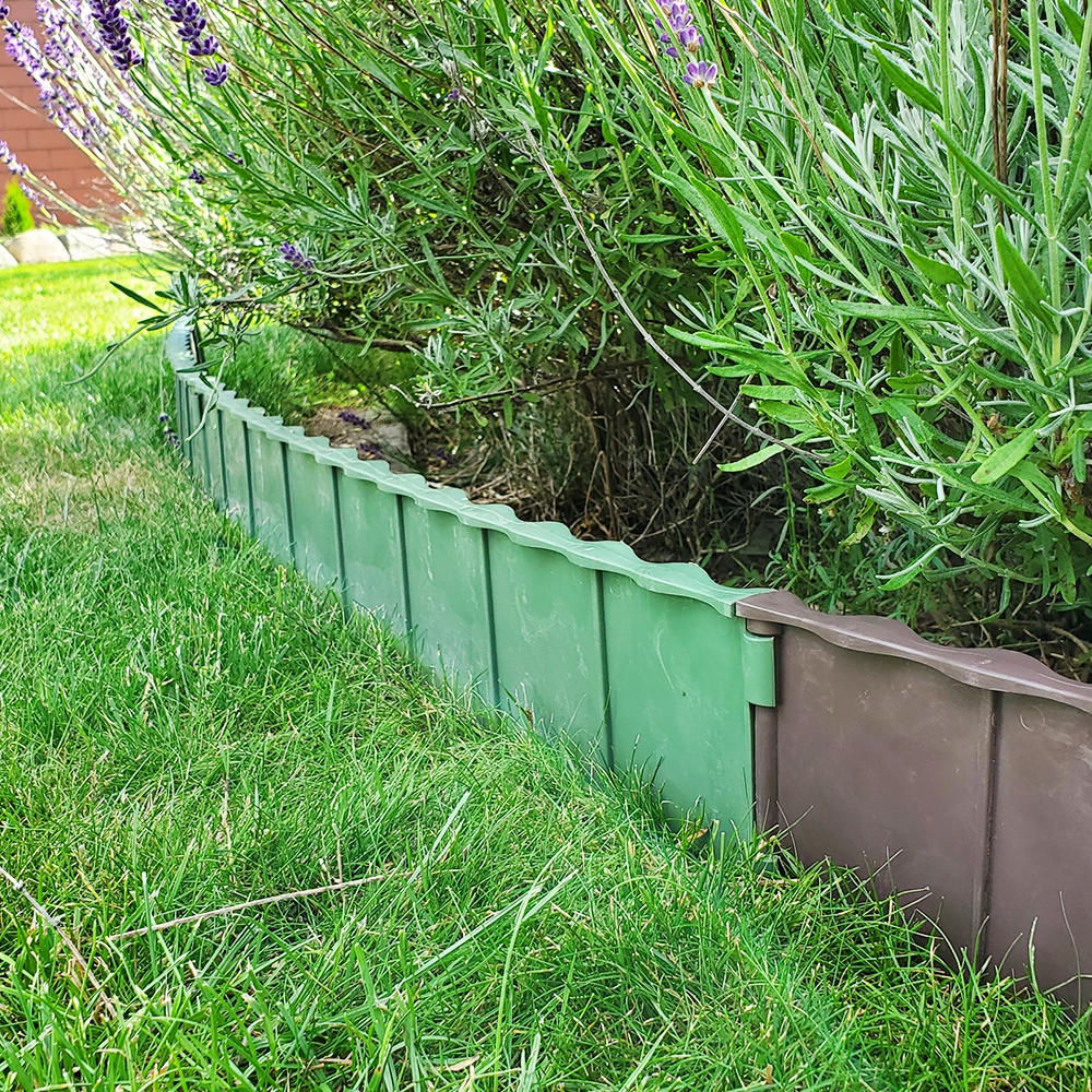 Matmenys 120 x 620 x 20 mm. Jungiasi vienas su kitu. Plastikinis atitvaras skirtas atskirti skirtingas zonas (vejos, gėlyno, akmenų) soduose, daržuose. Greitai ir lengvai montuojamas, nereikia specialių įrankių.