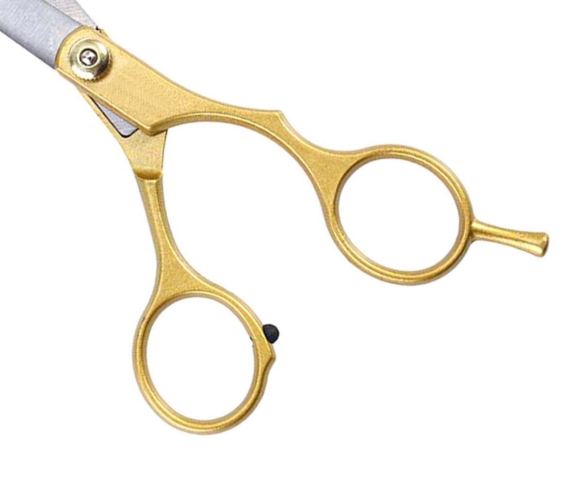 Ergonomiškos, tiesios kirpyklos žirklės iš nerūdijančio plieno. Puikiai tinka profesionaliam naudojimui ir mėgėjų kirpimui. Žirklių ašmenys turi specialų varžtą, skirtą reguliuoti tarpą. Guminis kamštis tarp pirštų rankenų užtikrina tylų darbą. Papildomas pirštų atrama padidina pjovimo tikslumą ir sumažina rankų nuovargį.