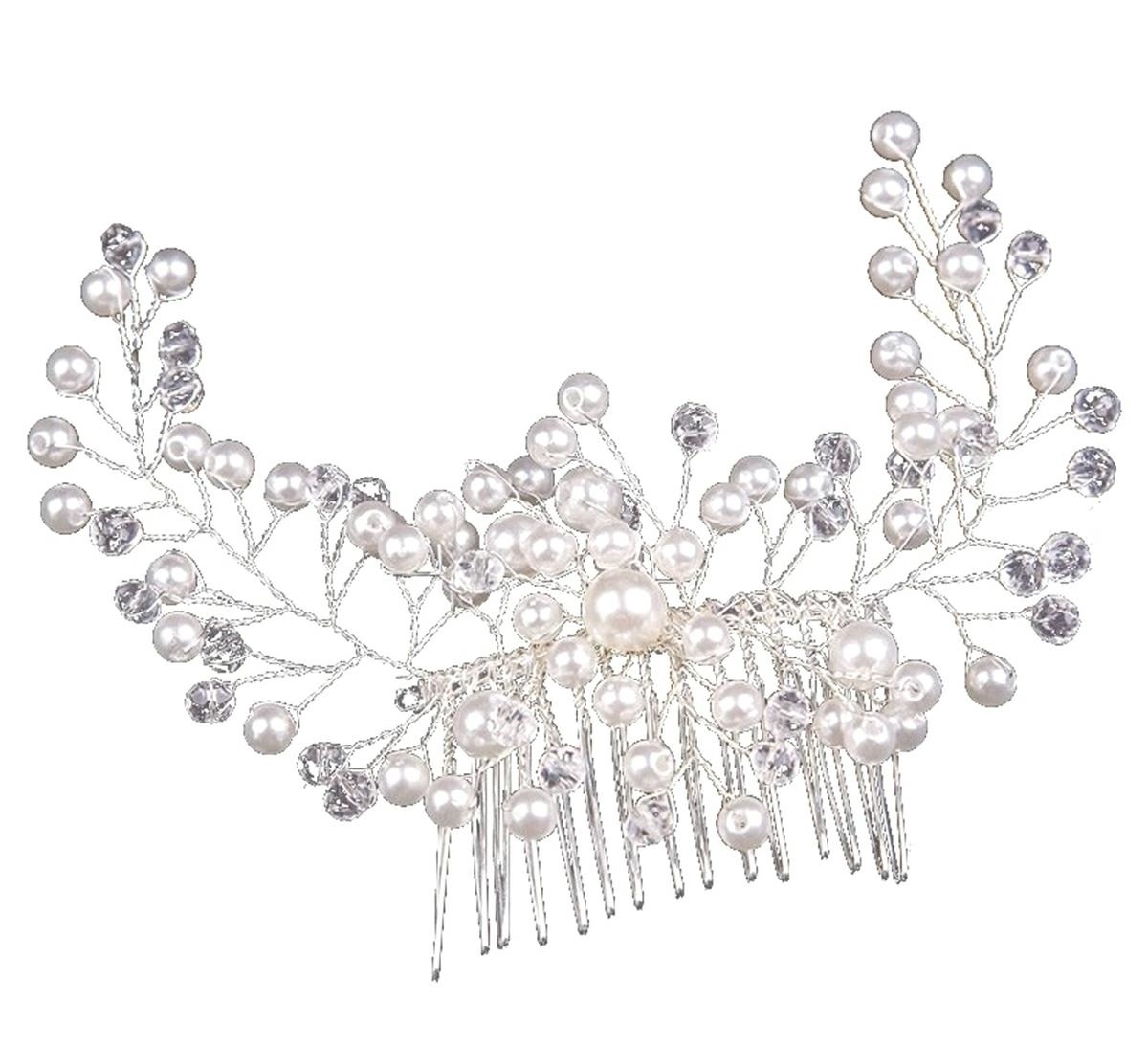 Vestuvinis plaukų segtukas šakelės formos su perlais. Aksesuaras surišti plaukus.