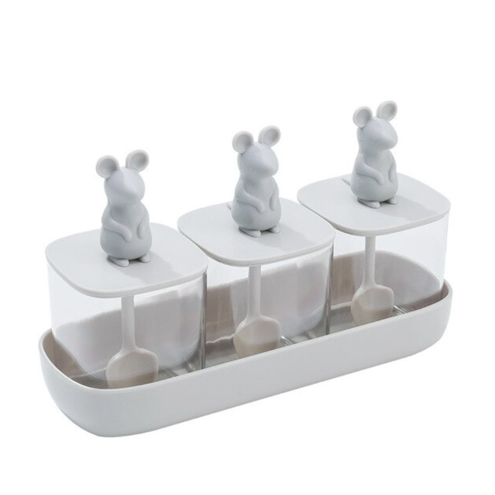 Skaidrus prieskonių indeliai su animacine rankena ir dangteliu, vandeniui atsparus prieskonių laikymo indelis, skirtas namų virtuvei.