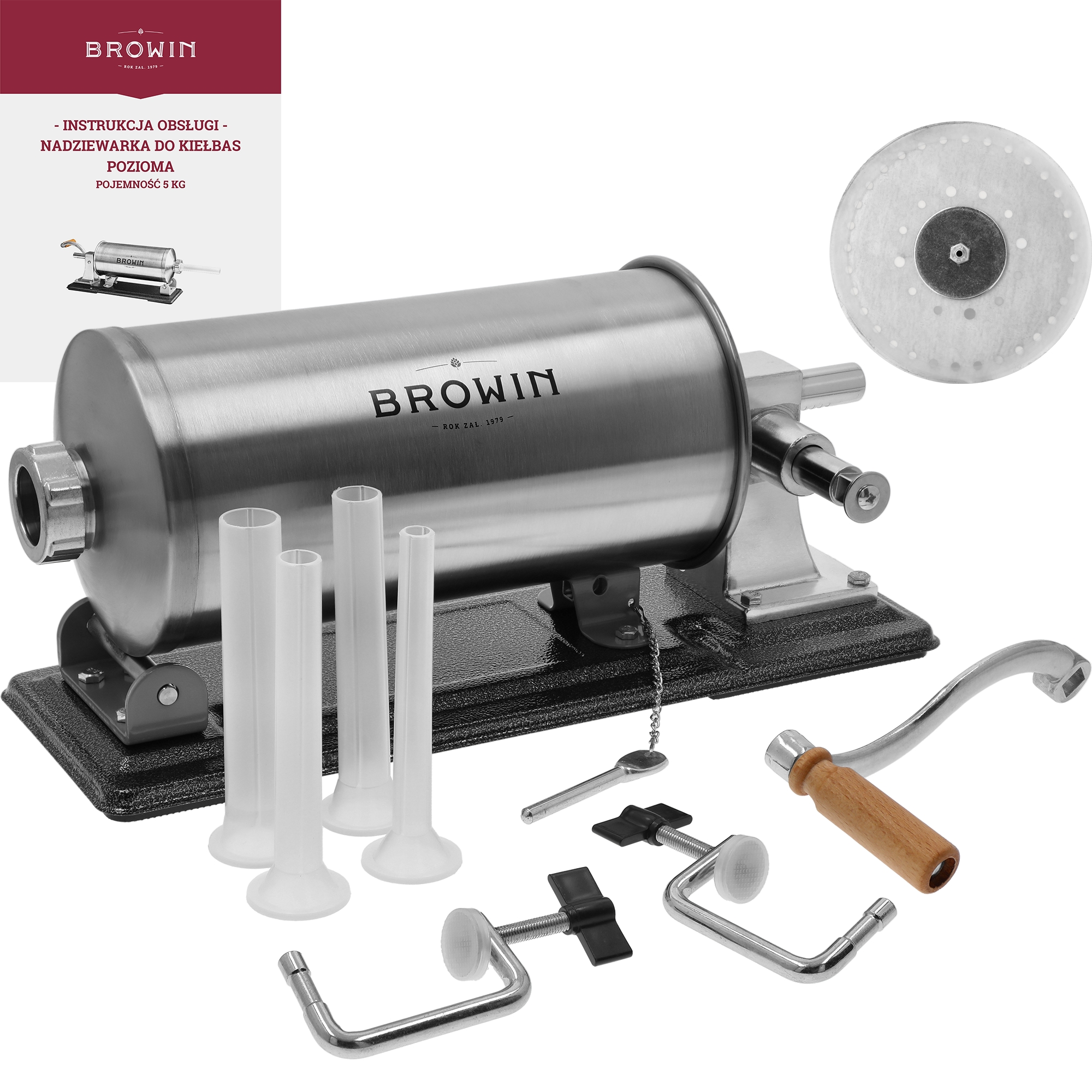 - Nepakeičiamas naminių dešrų gamybai – šis rankinis horizontalus kimštuvas, kurio talpa yra 5 kg, puikiai tiks namuose ruošiant namines dešras ir subproduktų patiekalus!