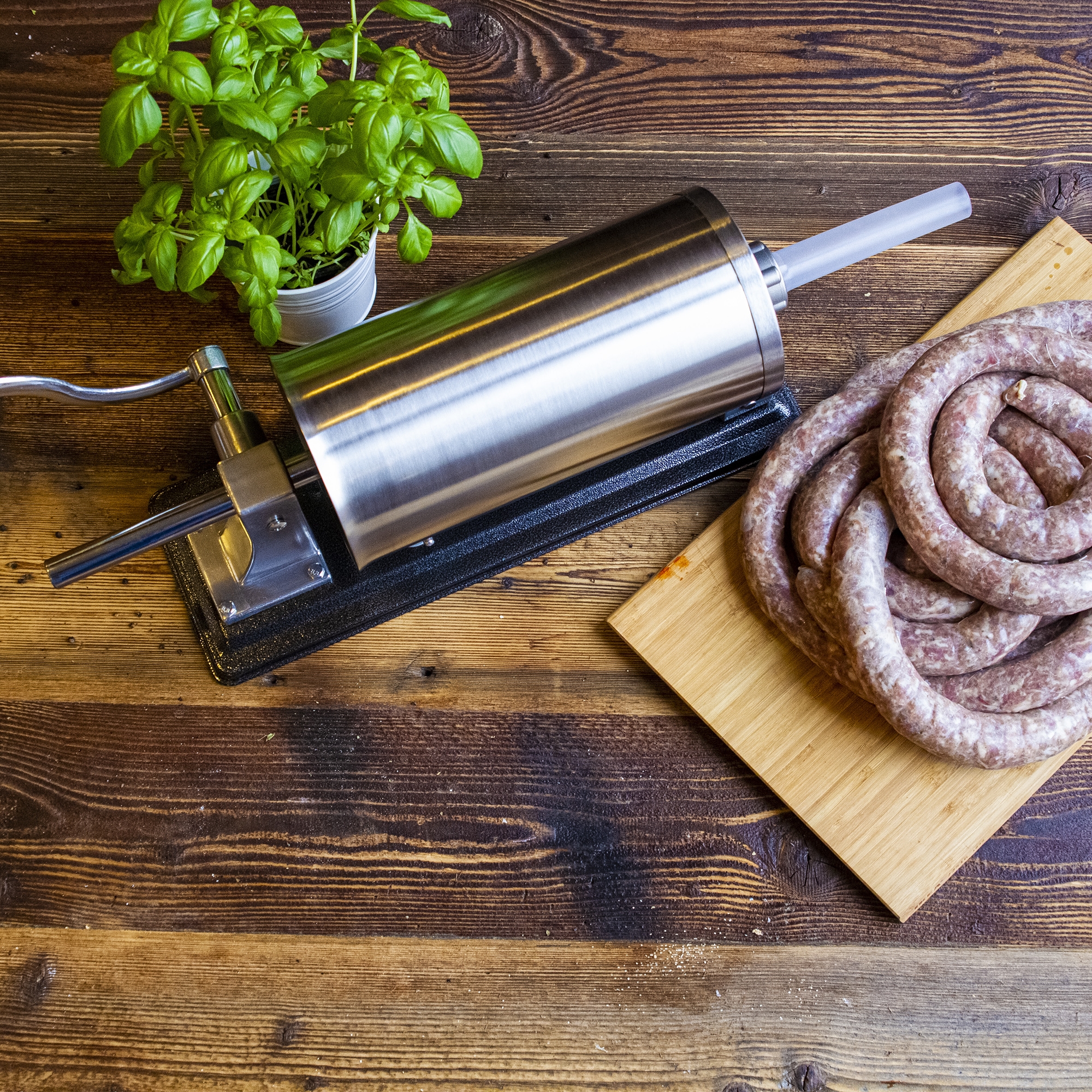 - Rankinis dešrų kimštuvas, puikiai tinkantis kiekvienam mėgstančiam namuose gaminti vytintas ar rūkytas mėsas.