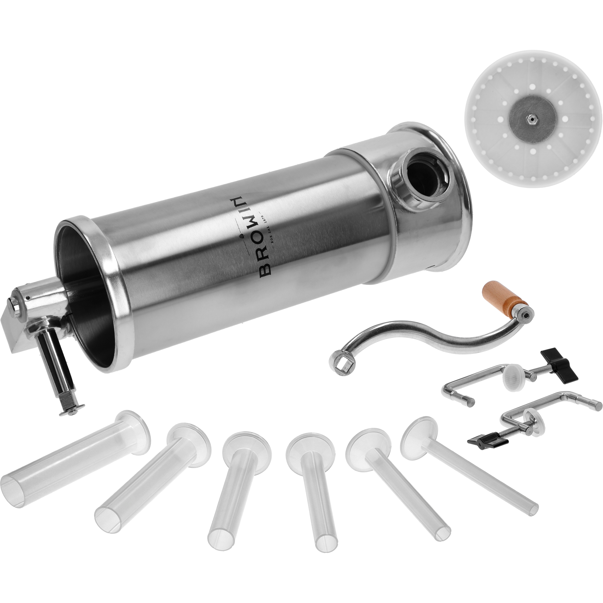 Ar kada nors svajojote apie sveikus, namuose gamintus mėsos gaminius be konservantų ir nereikalingų chemikalų? Mūsų vertikalus kimštuvas – tai būtinas prietaisas, kuris tikrai pravers gaminant namines dešras, mėsos ir subproduktų patiekalus. Kimštuvo cilindras pagamintas iš aukštos kokybės nerūdijančio plieno, o specialiai suprojektuotas stūmoklis, atsparus lenkimui ir su oro išleidimo vožtuvu, užtikrina ilgaamžiškumą.