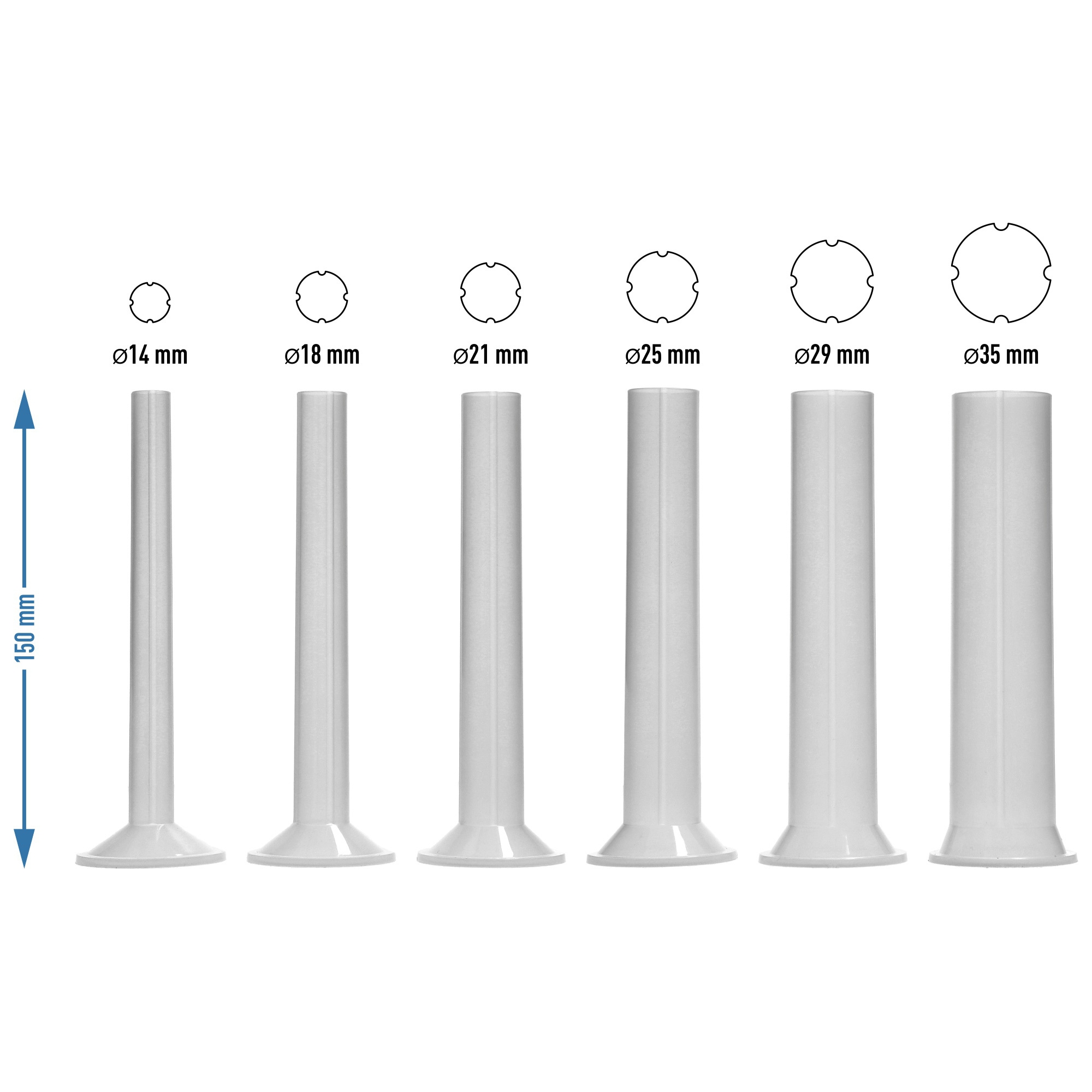 • 6 antgaliai (14 mm, 18 mm, 21 mm, 25 mm, 29 mm ir 35 mm);