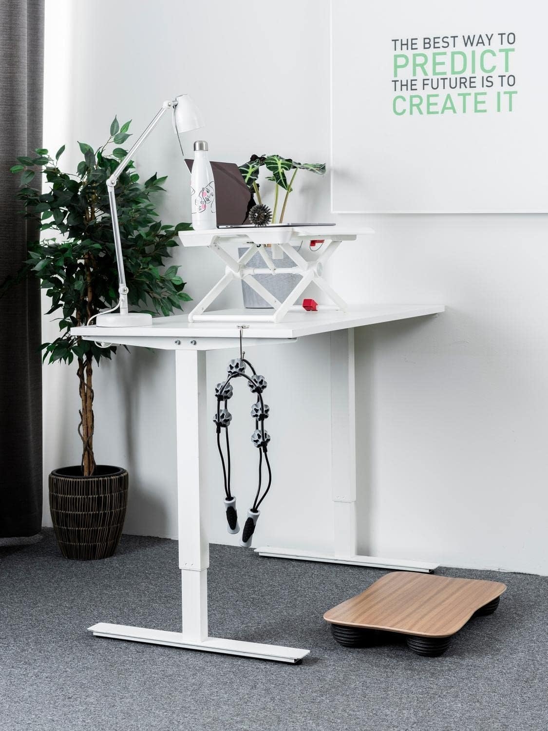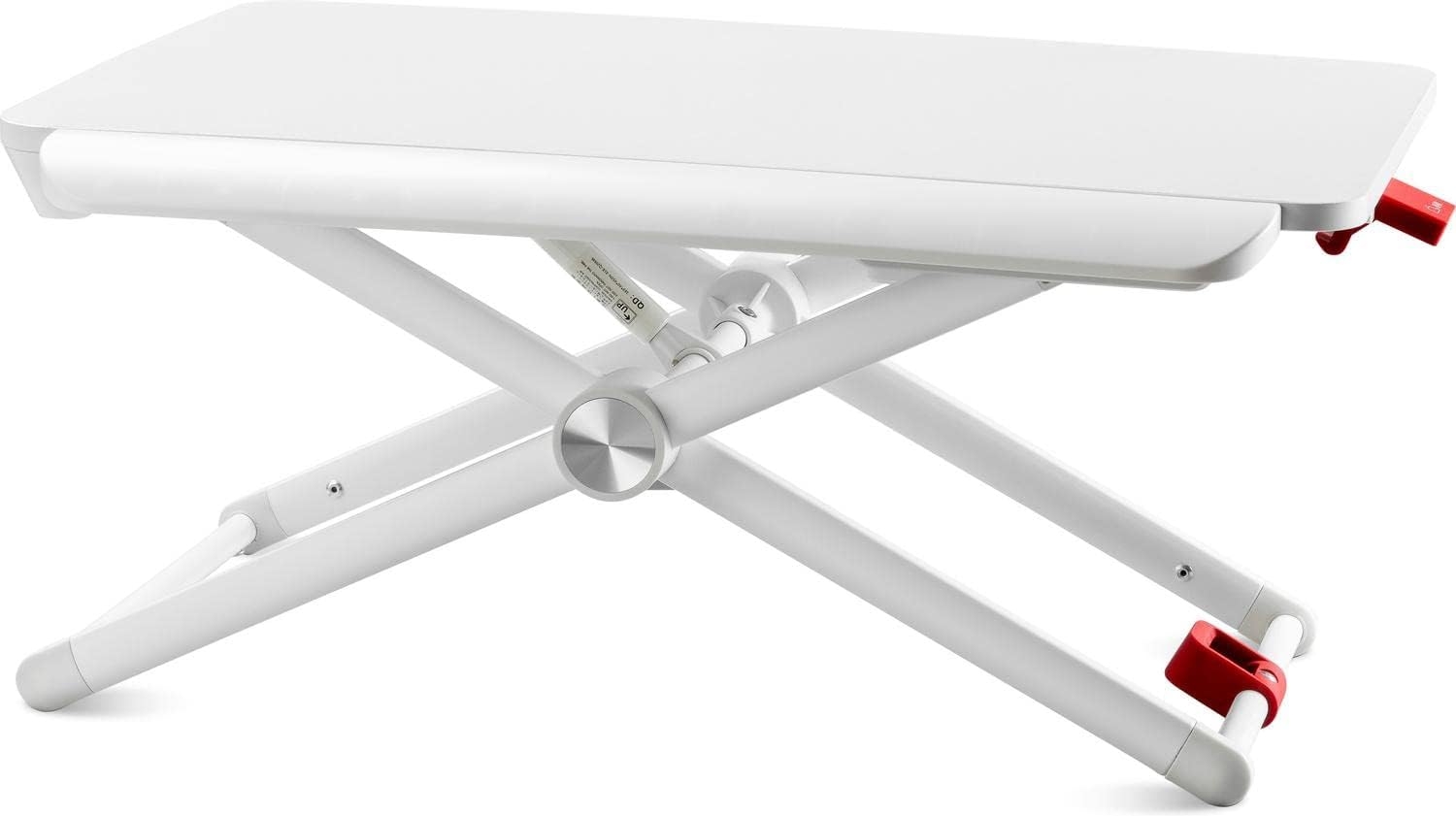 Šis stalo paaukštinimas pasižymi tvirta X formos konstrukcija, užtikrinančia stabilumą net ir intensyviai dirbant. Reguliuojamas aukštis leidžia lengvai pritaikyti stalviršį prie individualių poreikių – vos vienu judesiu galite pakeisti darbo poziciją iš sėdimos į stovimą. Tai padeda palaikyti aktyvesnį darbo ritmą, gerina laikyseną ir produktyvumą.