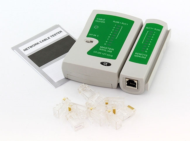 - – RJ45 / RJ11 vytos poros testeris, skirtas patikrinti laidų teisingumą.
