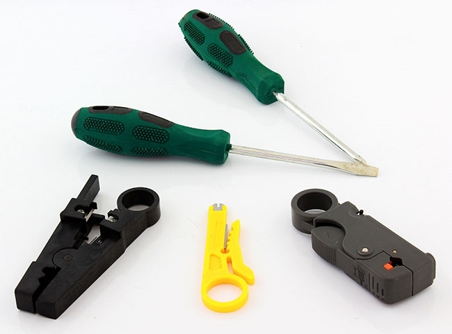 - – LSA smūgio įrankis / perforatorius – vadinamasis KRONE peilis (naudojamas atskiriems kabelių laidams tvirtinti „Keystone“ moduliuose ir „Patchpanels“ serveryje).