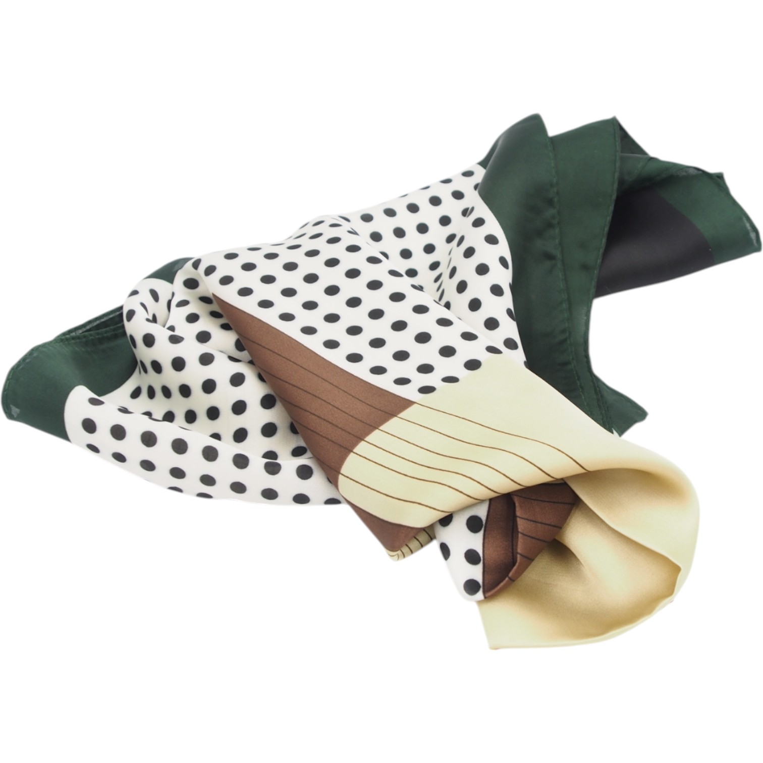 Pridėkite elegancijos savo įvaizdžiui su šiuo šilkiniu imituojančiu šalikėliu, dekoruotu subtiliais alyviniais žiedais ant gaivios žalios spalvos fono. Geometrinės linijos suteikia jam modernumo, o švelnus poliesterio audinys maloniai gula ant odos. Puikiai tiks kaklui, plaukams ar kaip aksesuaras rankinei.