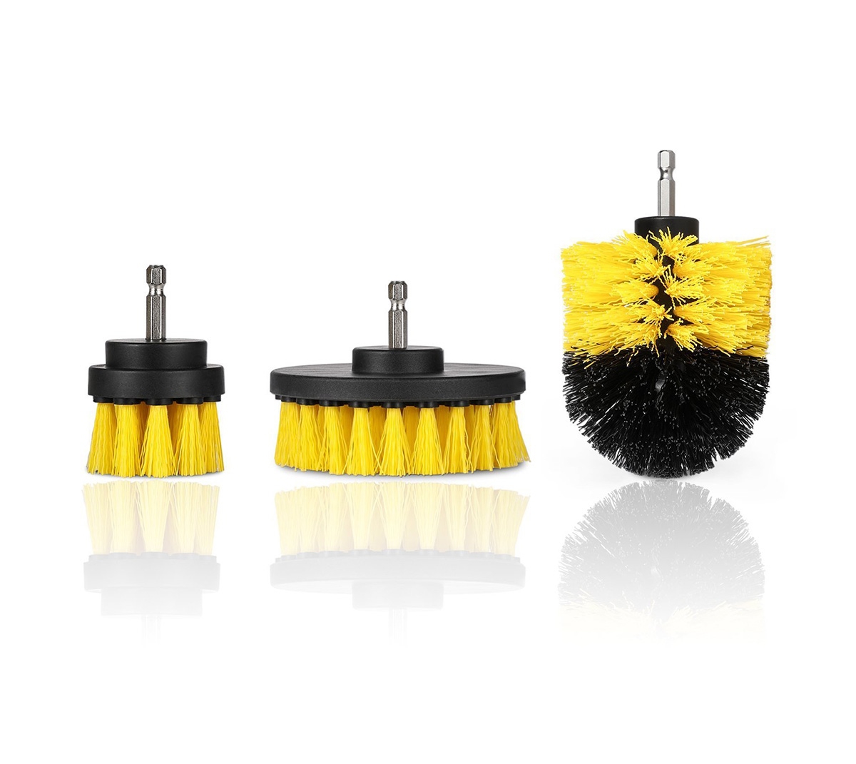 Trijų valymo šepetėlių rinkinys. Pritaikytas darbui tiek mėgėjiškomis, tiek profesionalomis sąlygomis, ypač naudingas namuose ir namų dirbtuvėse. Jie pritaikyti valyti įvairius paviršius gręžtuvu / atsuktuvu. Tankūs nailono šeriai ir metalinės rankenos užtikrina ilgalaikį ir lengvą įrankio naudojimą.
