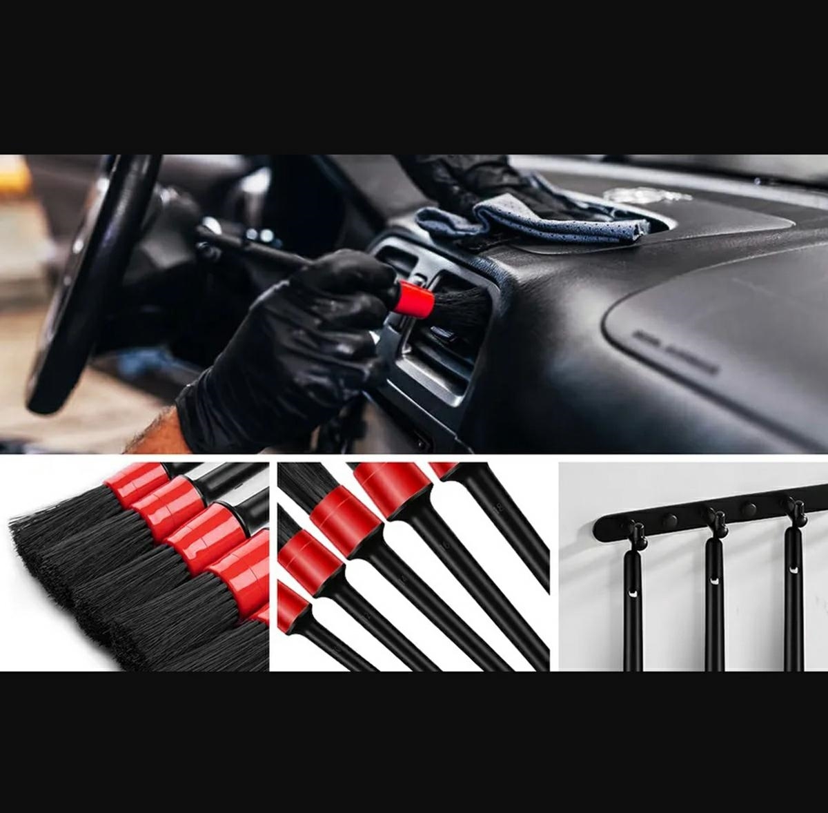 Penkių kompaktiškų šepetėlių rinkinys automobilio salono valymui. Jie puikiai tinka valyti subtilius kampelius ir plyšius transporto priemonės viduje. Ilgos ir patogios rankenos palengvina šepetėlio naudojimą siauruose tarpeliuose.
