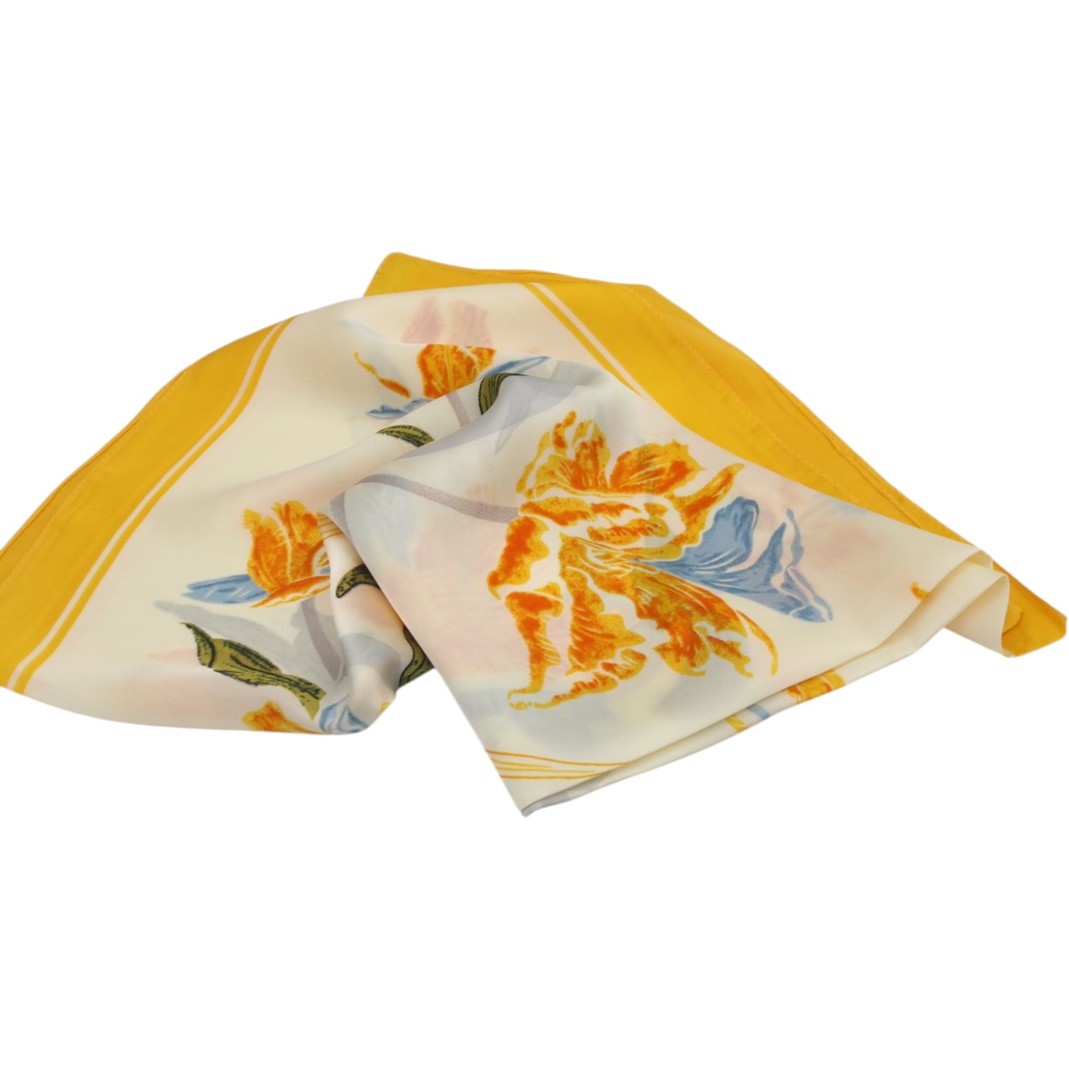 Skarelė su geltonu kraštu ir gėlėmis, 70×70 cm (poliesteris)
