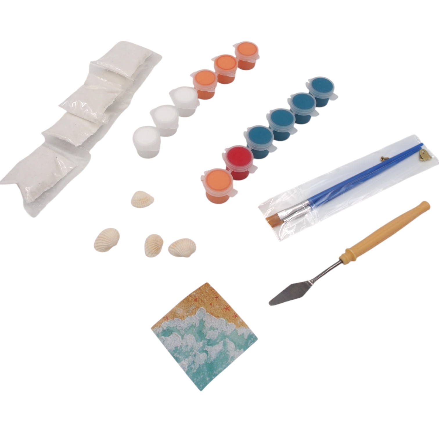 Sukurkite unikalų paplūdimio motyvais įkvėptą paveikslą su šiuo 30×30 cm drobės liejimo rinkiniu! Rinkinyje rasite viską, ko reikia kūrybai: gruntuotą drobę su paruoštu kontūru, akrilinius dažus, teptukus, mentelę, dekoratyvines kriaukles bei smėlį. Paprastas naudojimas leidžia net pradedantiesiems mėgautis tapybos procesu ir susikurti gražią dekoraciją namams ar dovaną artimam žmogui.