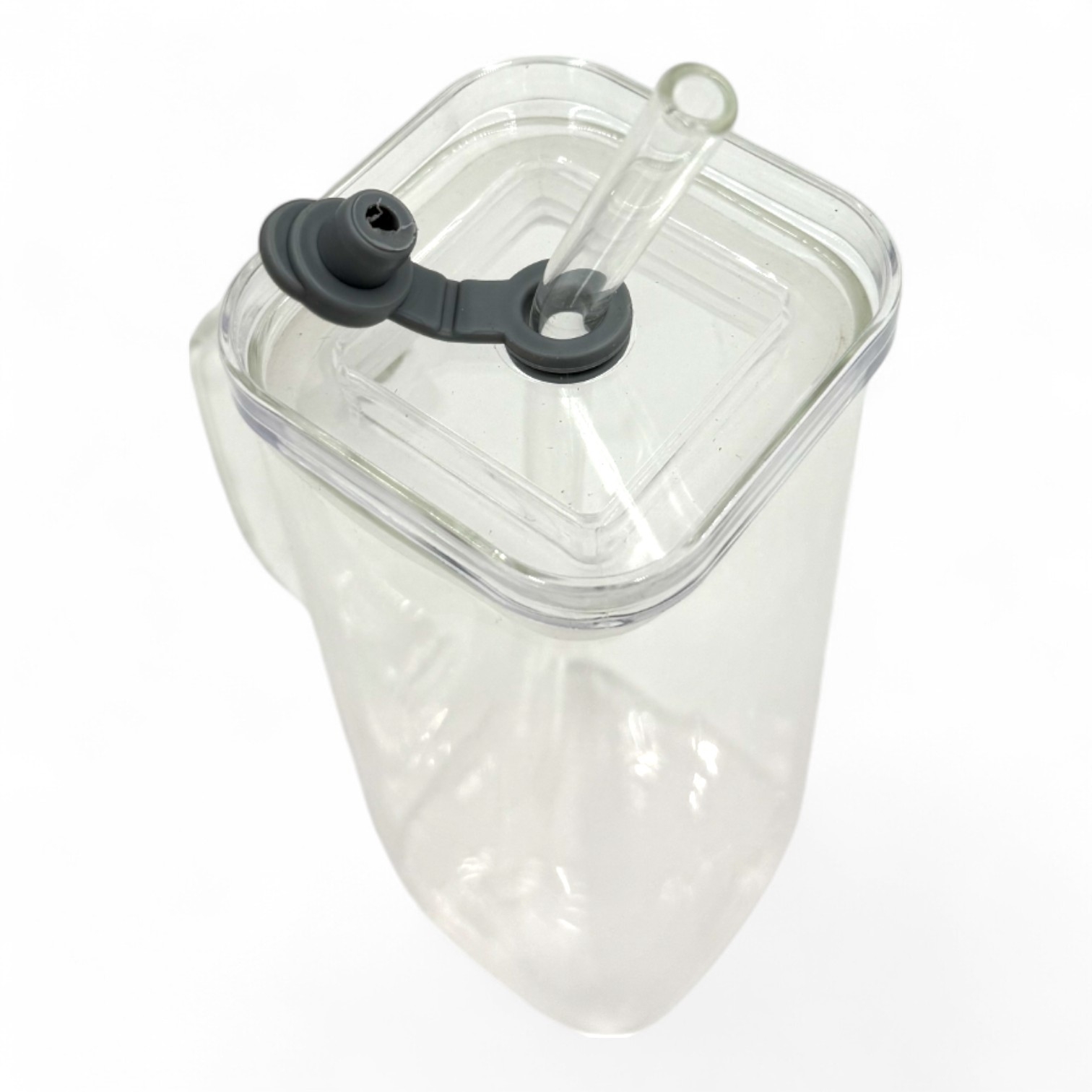 Stiklinis puodelis su šiaudeliu