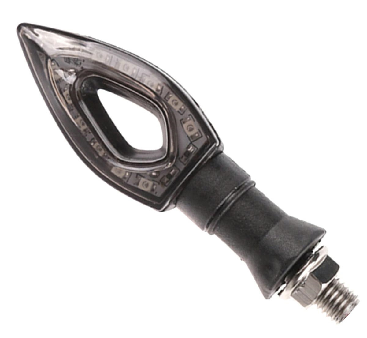 Universalūs 10x LED rodyklių formos posūkių rodikliai. Puikus aksesuaras jūsų motociklui. Šviesos diodai suteikia ryškią oranžinę šviesą – žymiai pagerina matomumą! Lanksti rankena apsaugos indikatorių nuo netyčinio nuplėšimo.