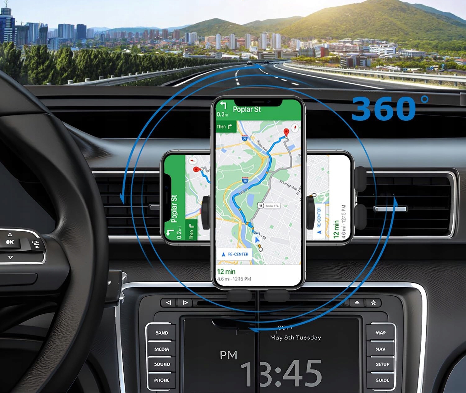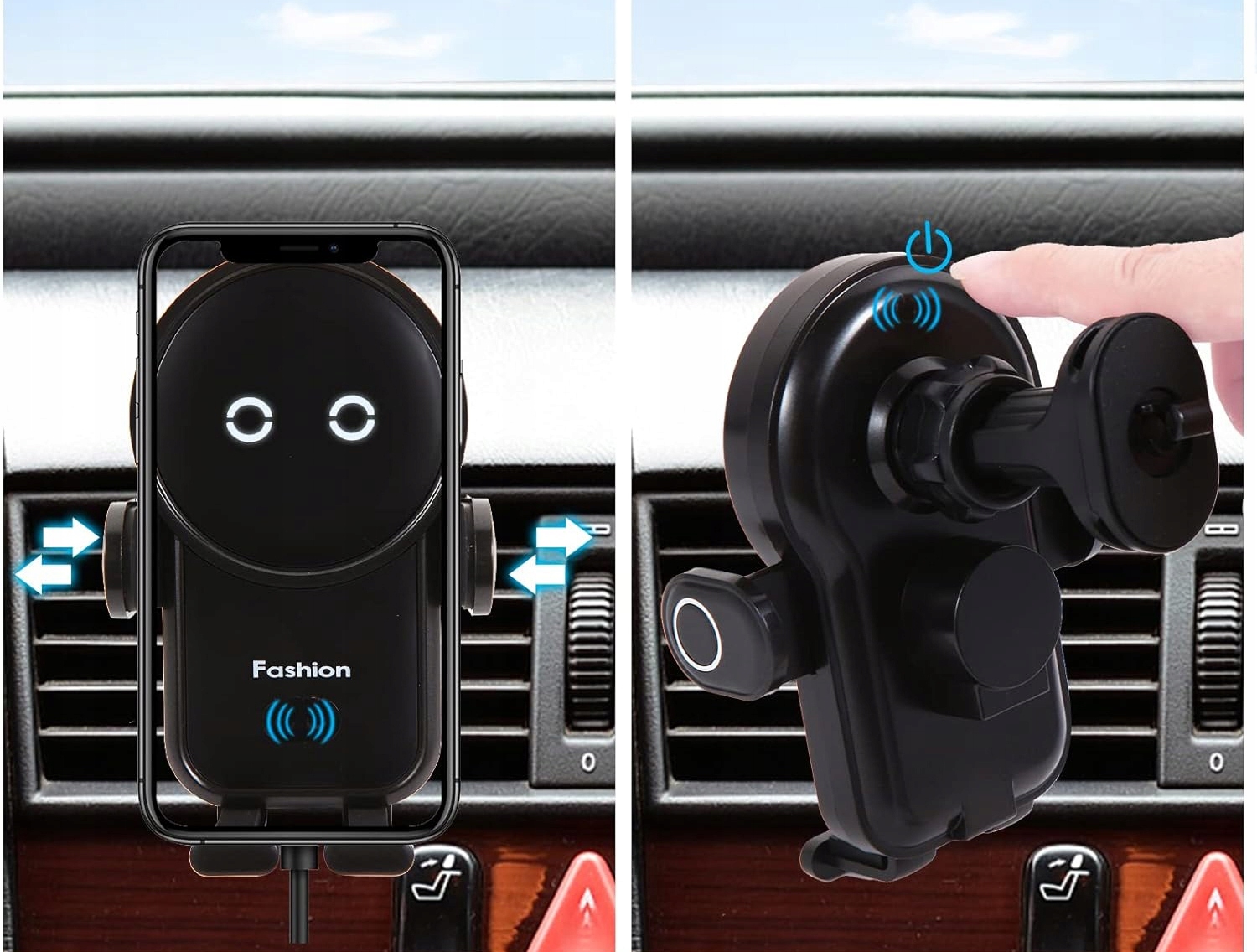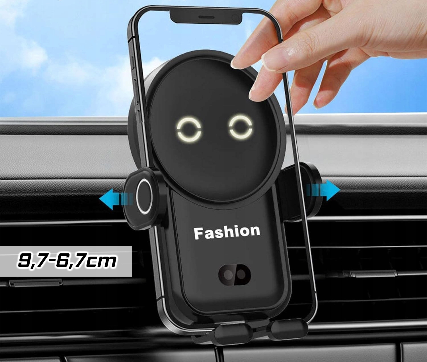 - Automatinis – elektrinis laikiklio svirties reguliavimas pagal telefono plotį (naudojant artumo jutiklį ir rankiniu būdu naudojant jutiklinį mygtuką).