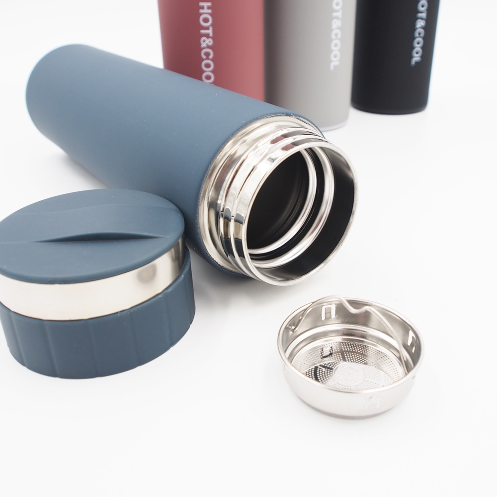 Aukštos kokybės termosinis puodelis iš nerūdijančio plieno ir aukštos kokybės plastiko. Specialus separatorius atskiria kavos tirščius ir kitus likučius nuo kavos, arbatos ir gėrimų. Puikiai tinka laikyti šaltus ir karštus gėrimus dėl gerų šilumos izoliacijos savybių!