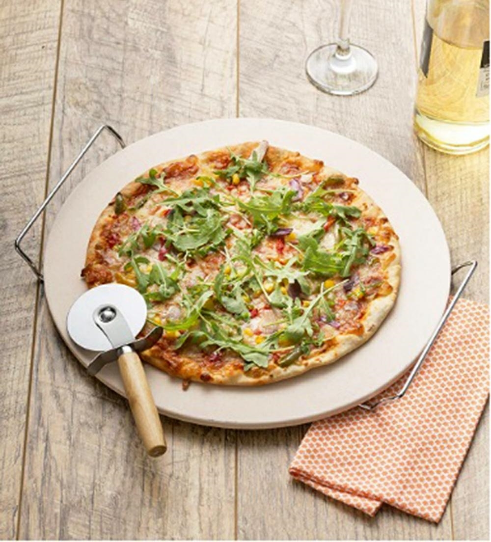Tvirtas picos kepimo akmuo, kurio skersmuo 33 cm. Juo daug lengviau kepti naminę picą, taip pat duoną ir kitus kepinius. Ant akmens kepama tešla greičiau stingsta, o picos pagrindas prie jo neprilimpa. Rinkinyje yra specialus plieninis pagrindas (kuris taip pat tarnauja kaip rankena) ir didelis picos pjaustytuvas su patogia rankena.