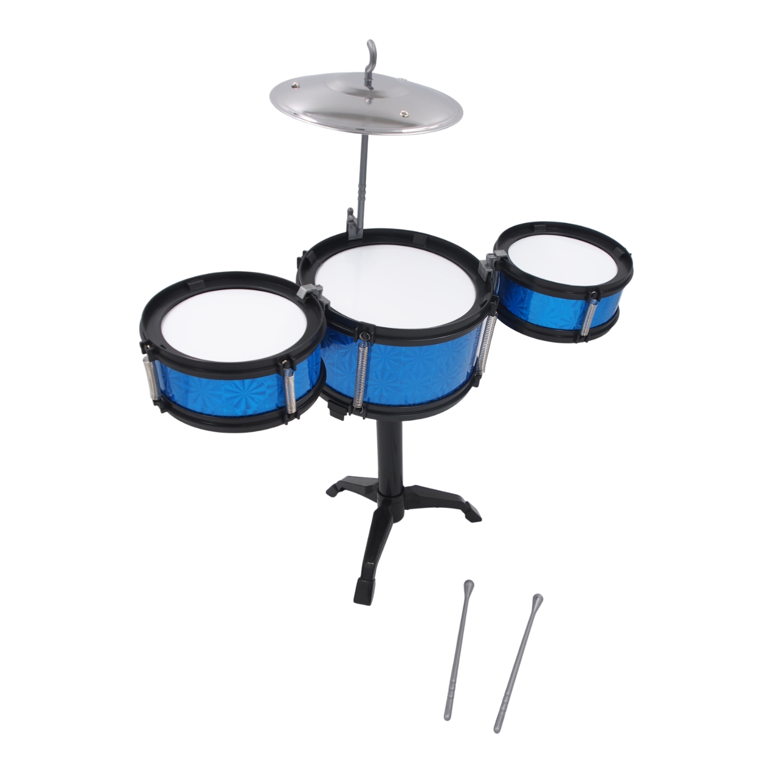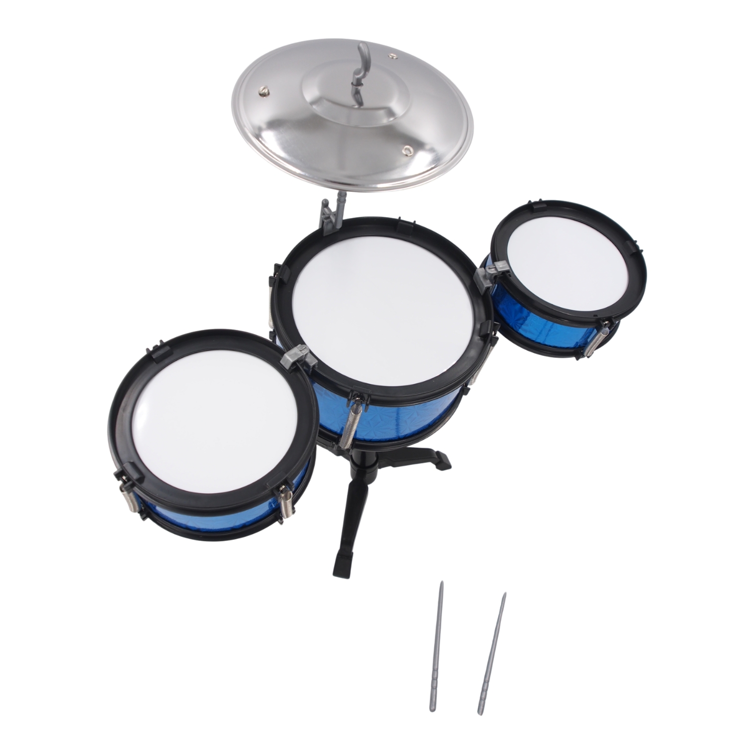 Šis rinkinys atkartoja tikro būgnų komplekto formą – yra keli skirtingų dydžių būgnai, stovas ir lėkštė. Vaikas jausis tarsi tikras būgnininkas!