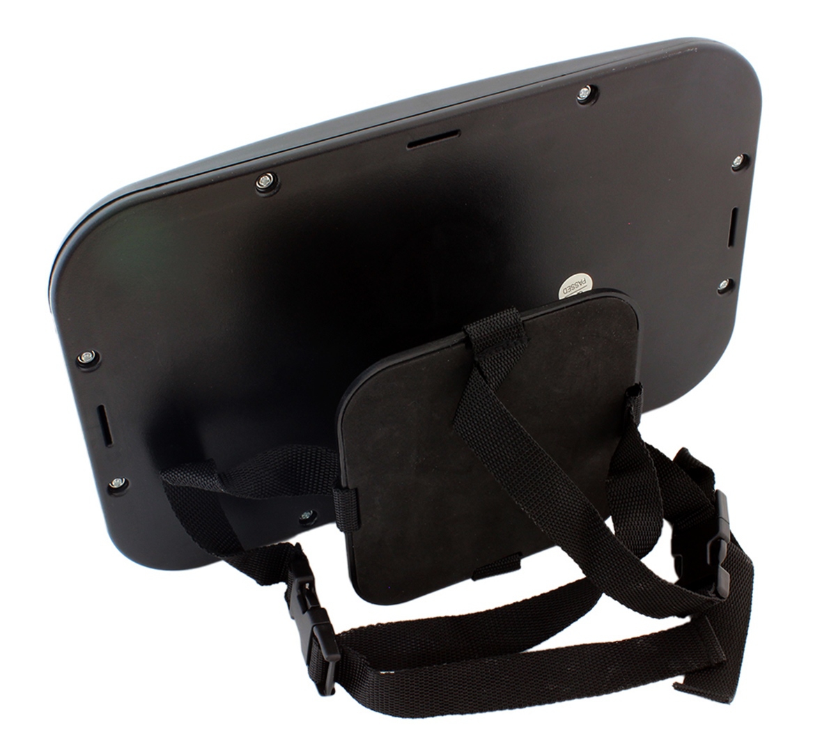- Labai greitai pritvirtinamas prie galvos atramos, naudojant diržą su sagtimi.