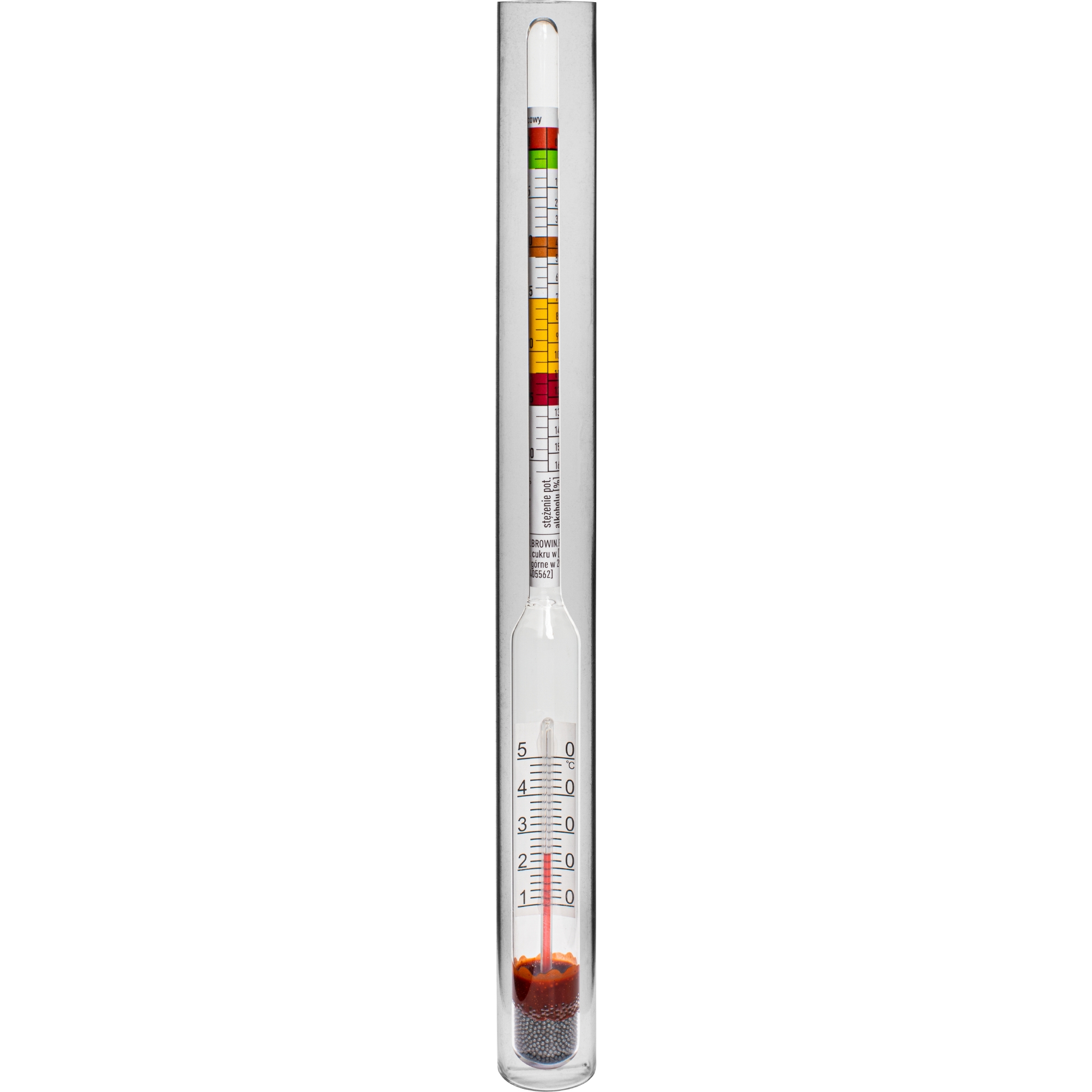 Vyno stiprumo ir cukraus koncentracijos matavimas – areometras, naudingas vyno gamybai ir alaus misos matavimui. Diapazonas: 0-30°Blg.