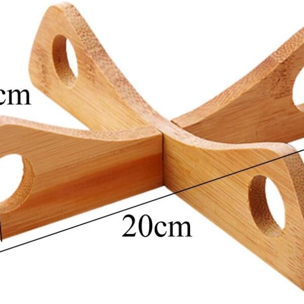 Medinis stovelis TR1316 Medinis virtuvės stovelis. Apsaugo paviršius nuo karštų puodų ir keptuvių. Medžiaga: medis. Išmatavimai: 20cm*4cm. Susideda iš dviejų dalių.