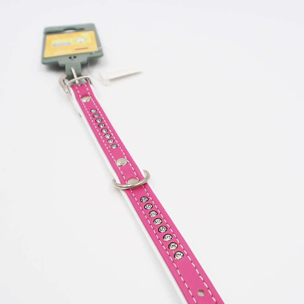 HUNTER rožinės odinės petnešos su Swarovski kristalais, 40/11 Prabangios ir stilingos HUNTER petnešos – puikus pasirinkimas augintiniui, vertinančiam komfortą ir išskirtinumą. Ryškiai rožinės spalvos petnešos pagamintos iš aukštos kokybės natūralios odos ir dekoruotos tikrais Swarovski® kristalais, kurie suteikia subtilaus žavesio. Dydis: 40/11 (kaklo apimtis ~40 cm, plotis – 11 mm) Spalva: rožinė Medžiaga: natūrali oda…