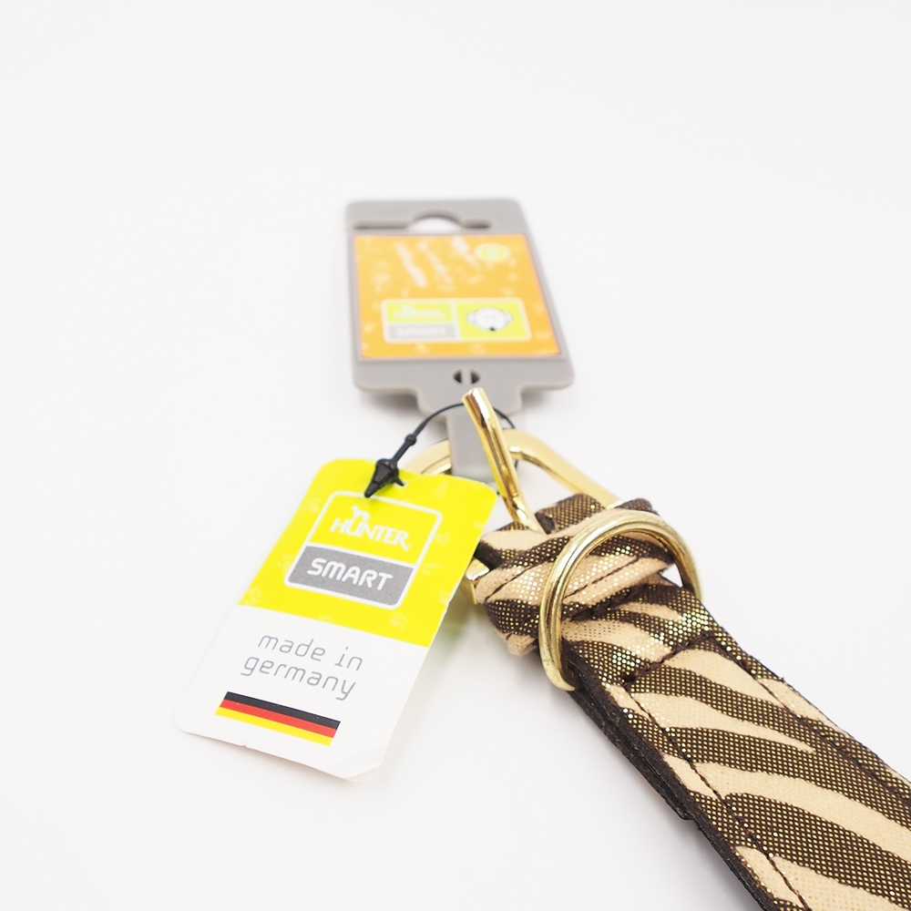 HUNTER odinis šuns antkaklis, zebro rašto, 50 cm Išskirtinio dizaino HUNTER odinis šuns antkaklis – stilingas ir patikimas pasirinkimas vidutinio dydžio ir didesniems šunims. 50 cm ilgio antkaklis dekoruotas elegantišku zebro raštu su švelniu blizgesiu ir aukso spalvos metalinėmis detalėmis. Savybės: Ilgis: 50 cm – tinka vidutinio dydžio ir stambesniems šunims Medžiaga: aukštos kokybės oda…