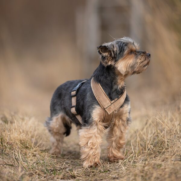 Gustaf & Evita šunų petnešos – smėlio spalvos veliūrinės Šios elegantiškos Gustaf & Evita petnešos yra stiliaus, komforto ir kokybės derinys. Pagamintos iš švelnaus, prabangaus veliūro, jos ne tik puošia augintinį, bet ir suteikia jam maksimalų komfortą pasivaikščiojimų metu. Tai – puikus pasirinkimas tiek kasdienai, tiek išskirtinėms progoms. Savybės: Dydis: 1 – Jorkšyro terjeras, katė….