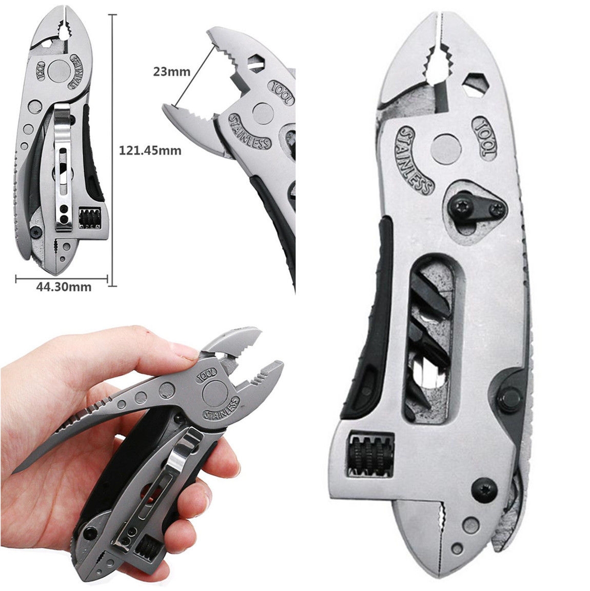 Produkto savybės ir specifikacijos: Naujas produktas, aukštos kokybės. Patikimas ir universalus įrankis. „Multitool” yra daug naudingų įrankių ypač keliaujant. Įrankis yra labai patvarus, nes naudojamas nerūdijantis plienas, kurio kietumas yra 56 HRC. Gali lengvai tilpti į kišenę, kuprinę ar automobilio laikymo dėžę. Puiki dovana kiekvienam vyrui Matmenys: 12,0 cm x 4,0 cm x 1,2 cm…