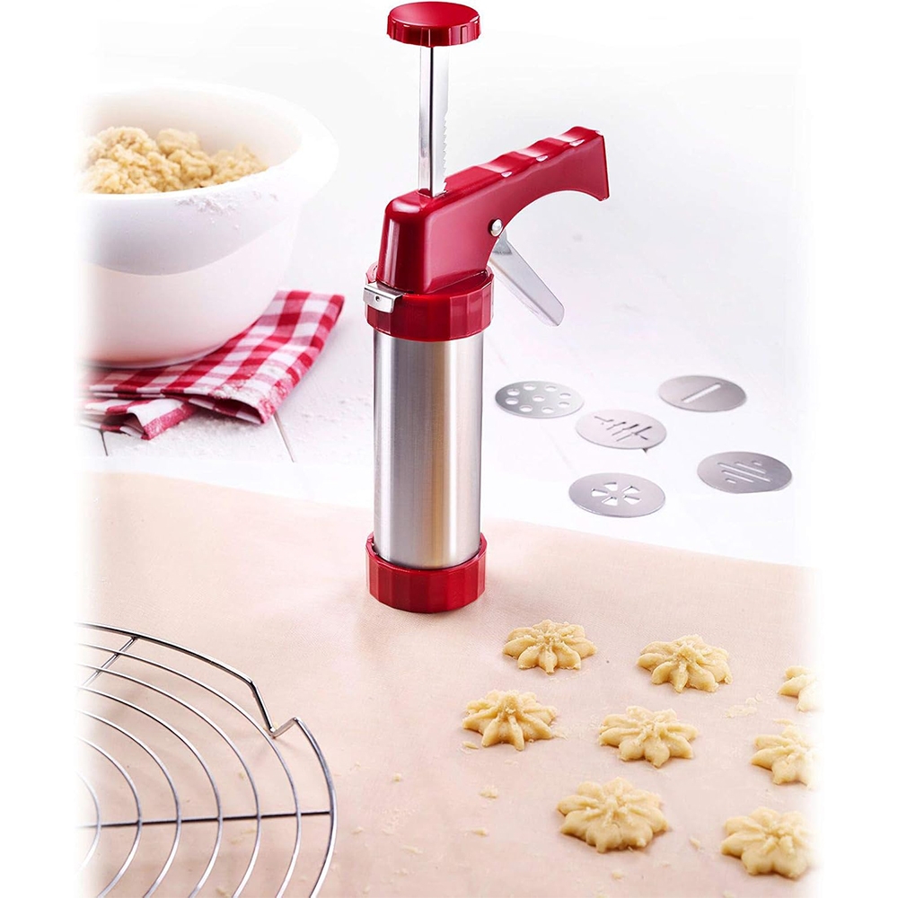 Pistoletas sausainių tešlai Turite užslėptų konditerijos sugebėjimų? Nerūdijančio plieno pistoletas sausainių tešlai „King Hoff” – kaip tik Jums! Pagaminta iš aukščiausios kokybės nerūdijančio plieno. Kepkite pačios įvairiausios formos sausainius su dvidešimt skirtingų antgalių. Savybės: Pagaminta iš aukščiausios kokybės nerūdijančio plieno; Reguliuojamas sausainių storis; Dvidešimt skirtingų antgalių sausainiams; Keturi skirtingi antgaliai kulinarijos dekoravimui; Spalva: sidabrinė.