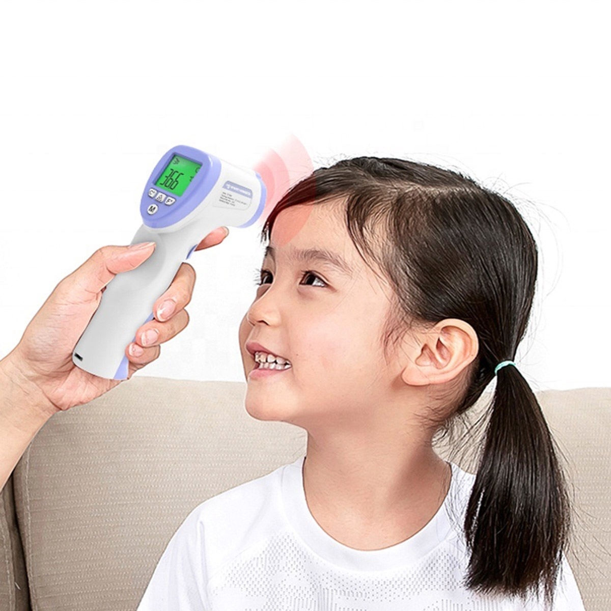 Elektroninis, bekontaktis infraraudonųjų spindulių termometras, skirtas visai šeimai. Priemonė skirta specialiai mažų vaikų kūno temperatūrai matuoti – ji itin greita ir neinvazinė. Temperatūros matavimas atliekamas praėjus mažiau nei 2 sekundėms po prietaiso prikėlimo prie kaktos. Vaikas to net nepastebės, todėl temperatūrą patikrinti bus daug lengviau. Įrengtas aiškus LCD ekranas, kurio spalva keičiasi priklausomai nuo temperatūros…